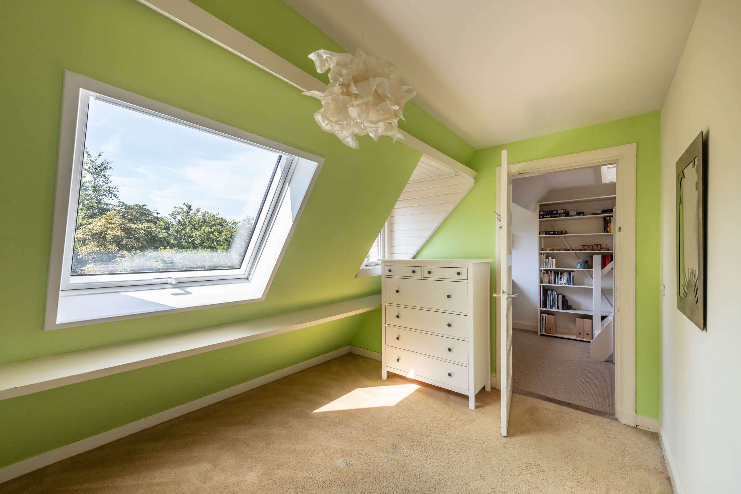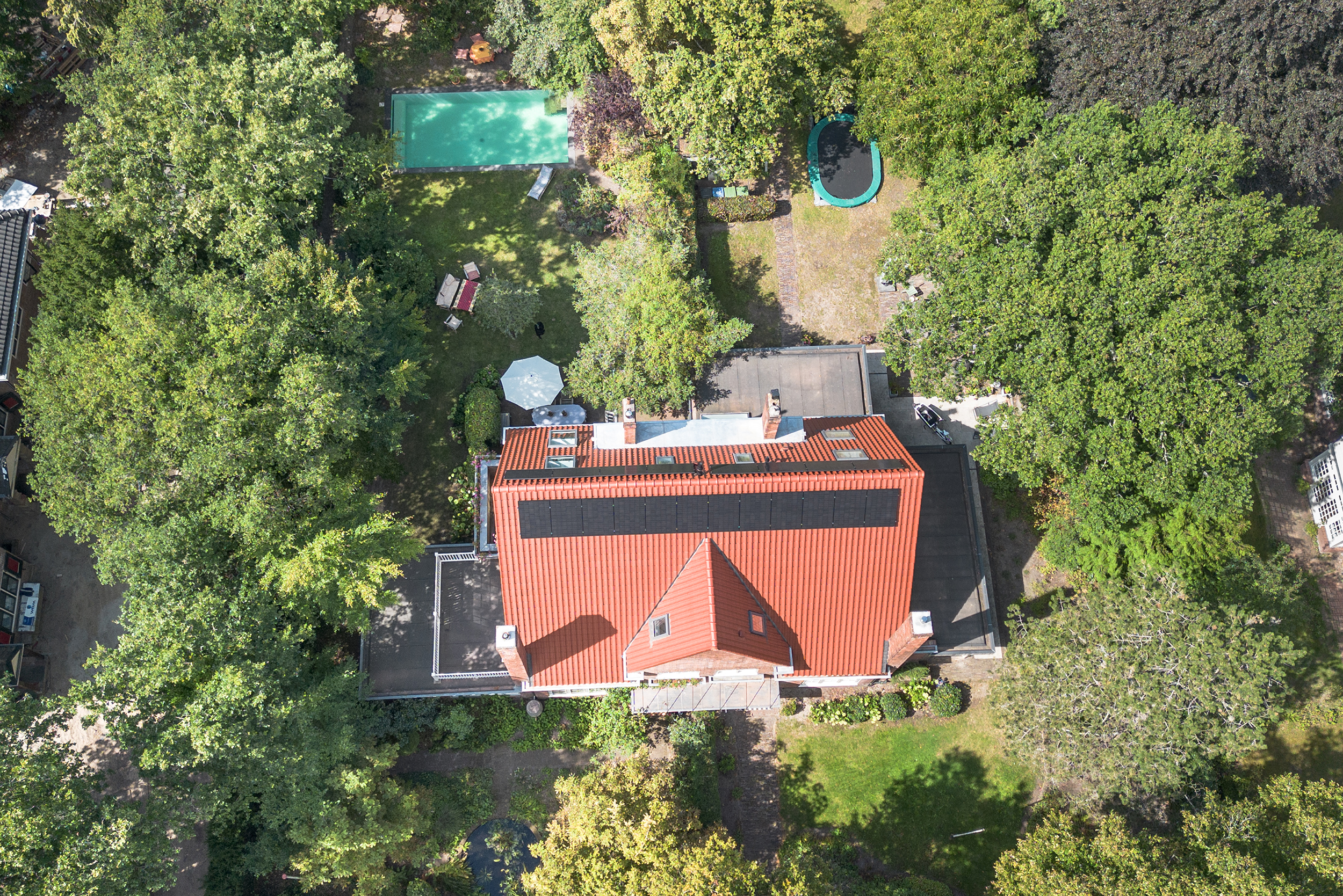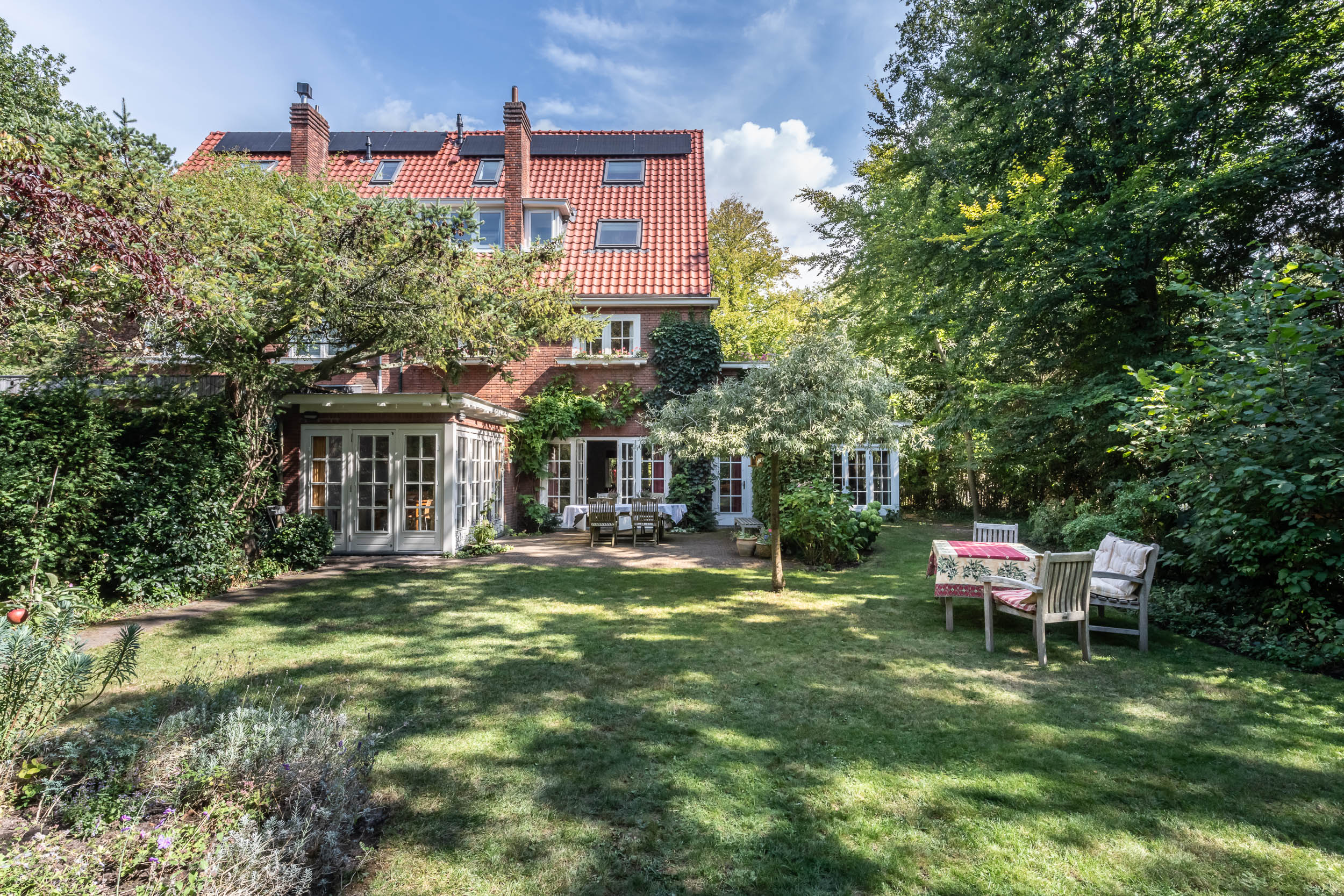 This well-maintained, semi-detached distinctive and uniquely designed villa with swimming pool and garage on a large plot of over 1,000 m² is located on the green and quiet Grenslaan. All living areas are beautifully situated facing the sun (west and south side). A family home par excellence: 6 bedrooms and 2 bathrooms! The extension on the side of the house (which completely matches the style of the main house) has created plenty of space on the ground floor for an extra room, such as a playroom, TV room or study. The beautifully landscaped garden has several terraces, is in a sunny location facing the west and offers complete privacy! At the rear of the garden, where the plot borders Wikkelaan, there is parking space for two cars on private land with two private charging stations.
