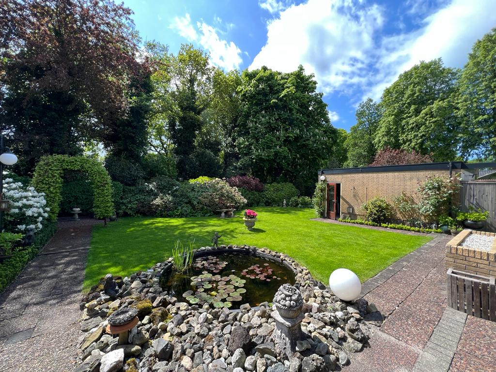 The spacious driveway offers space for several cars, in addition to the detached double garage and a lush front garden.