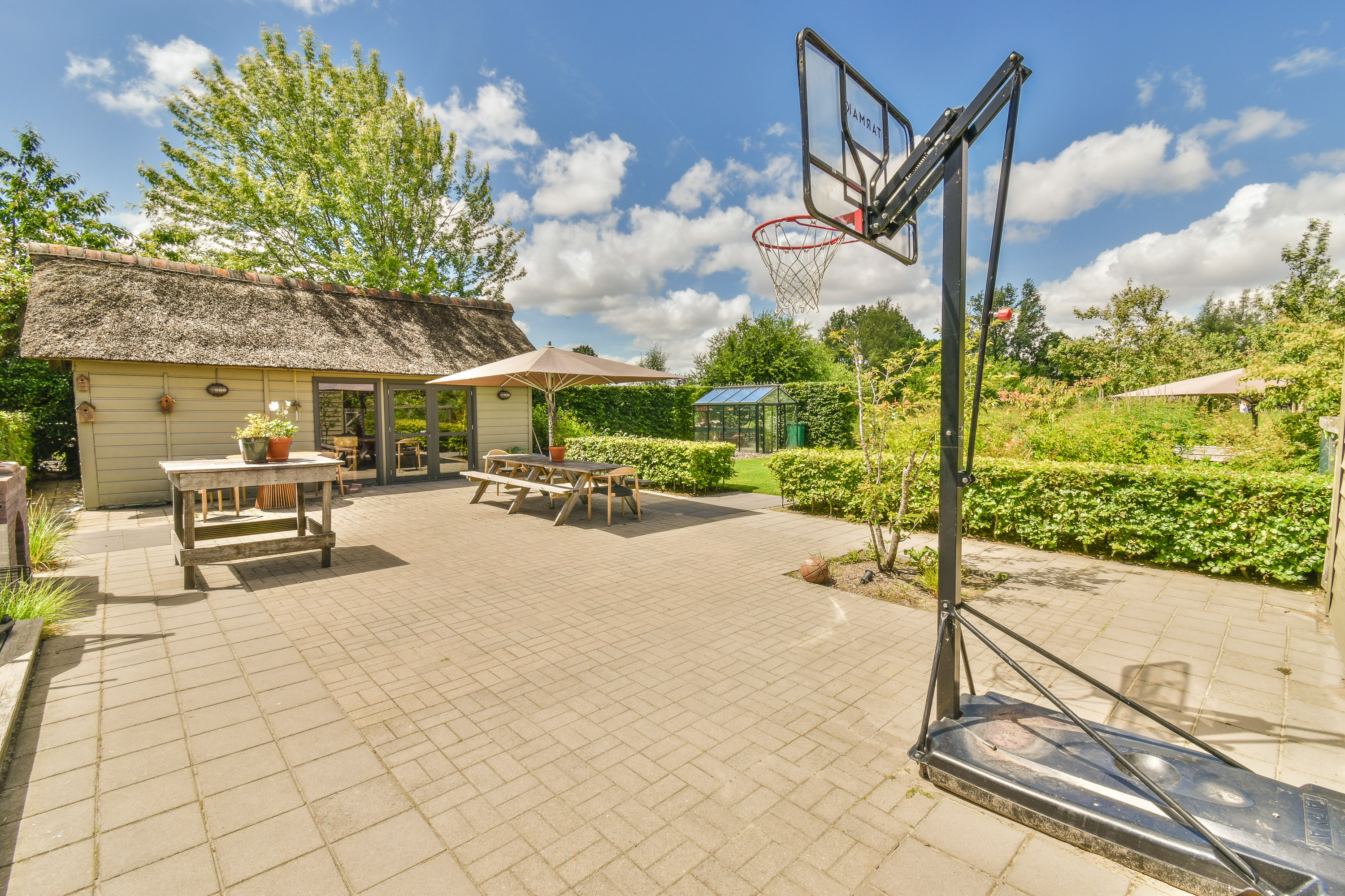 - Heated swimming pool with pool house including a bathroom