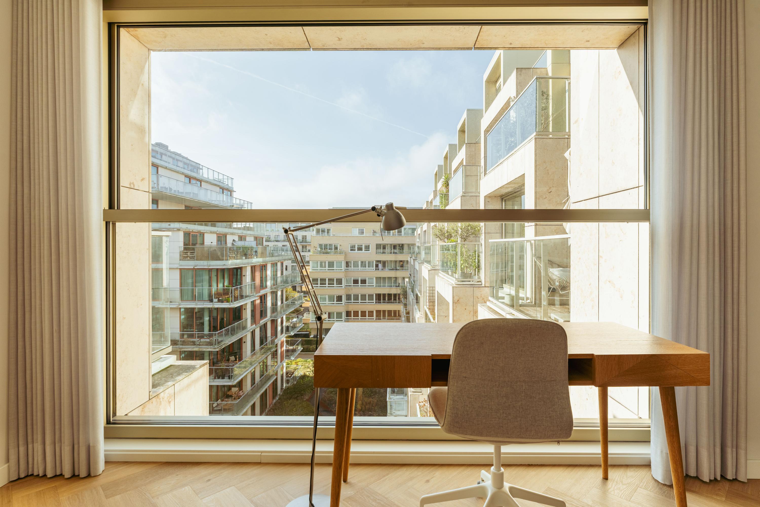 The apartment complex 'The Grid' consists of 68 luxurious residences. Completed in 2021, the building is characterised by its stepped façade and thoughtful design. The spacious lobby features an extra-high ceiling and forms the heart of the building. Situated directly along the street, with plenty of glass and views of the internal garden, it is a wonderful meeting place. The building also includes a shared indoor bicycle storage area and a parcel delivery room.
