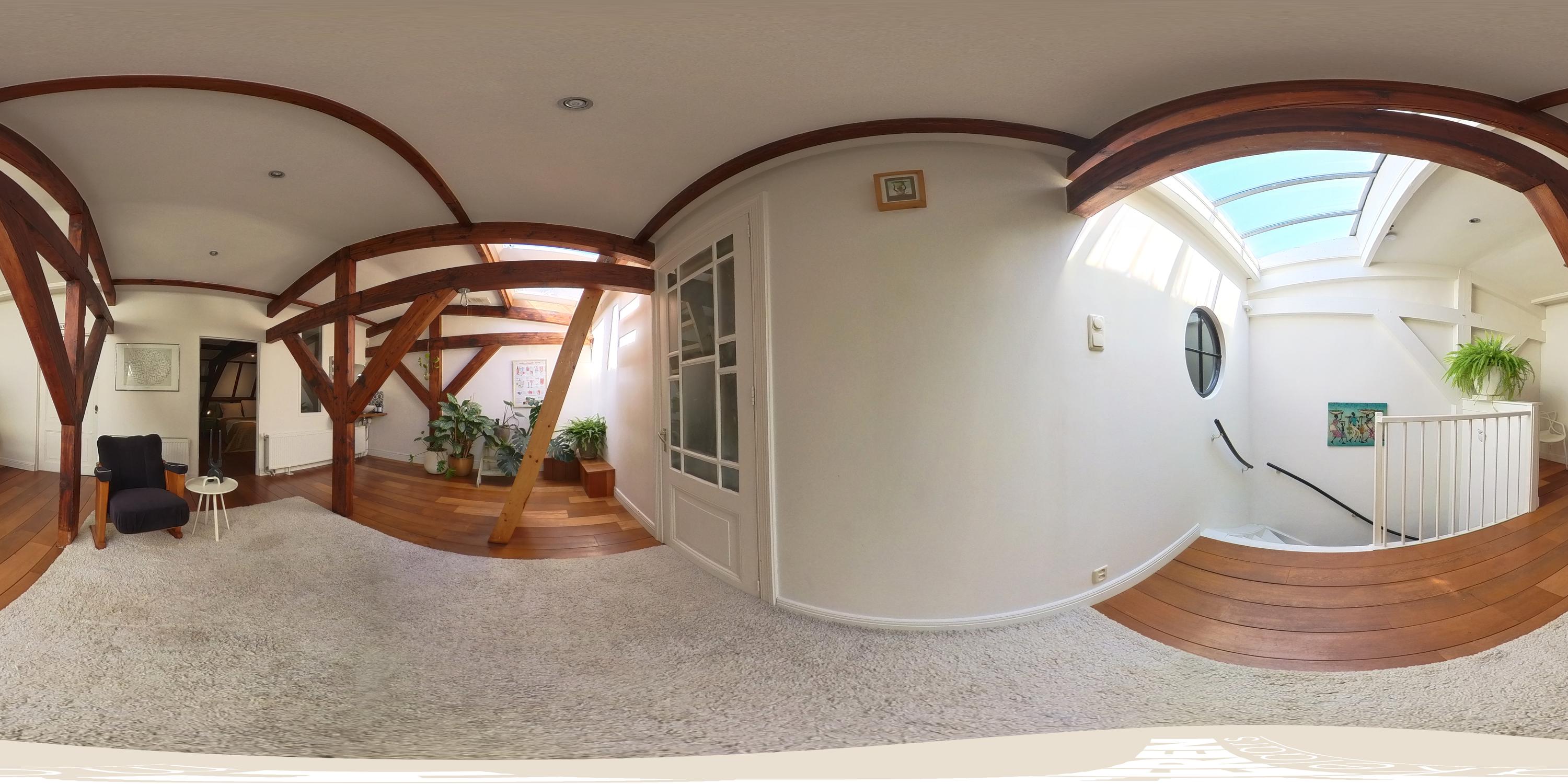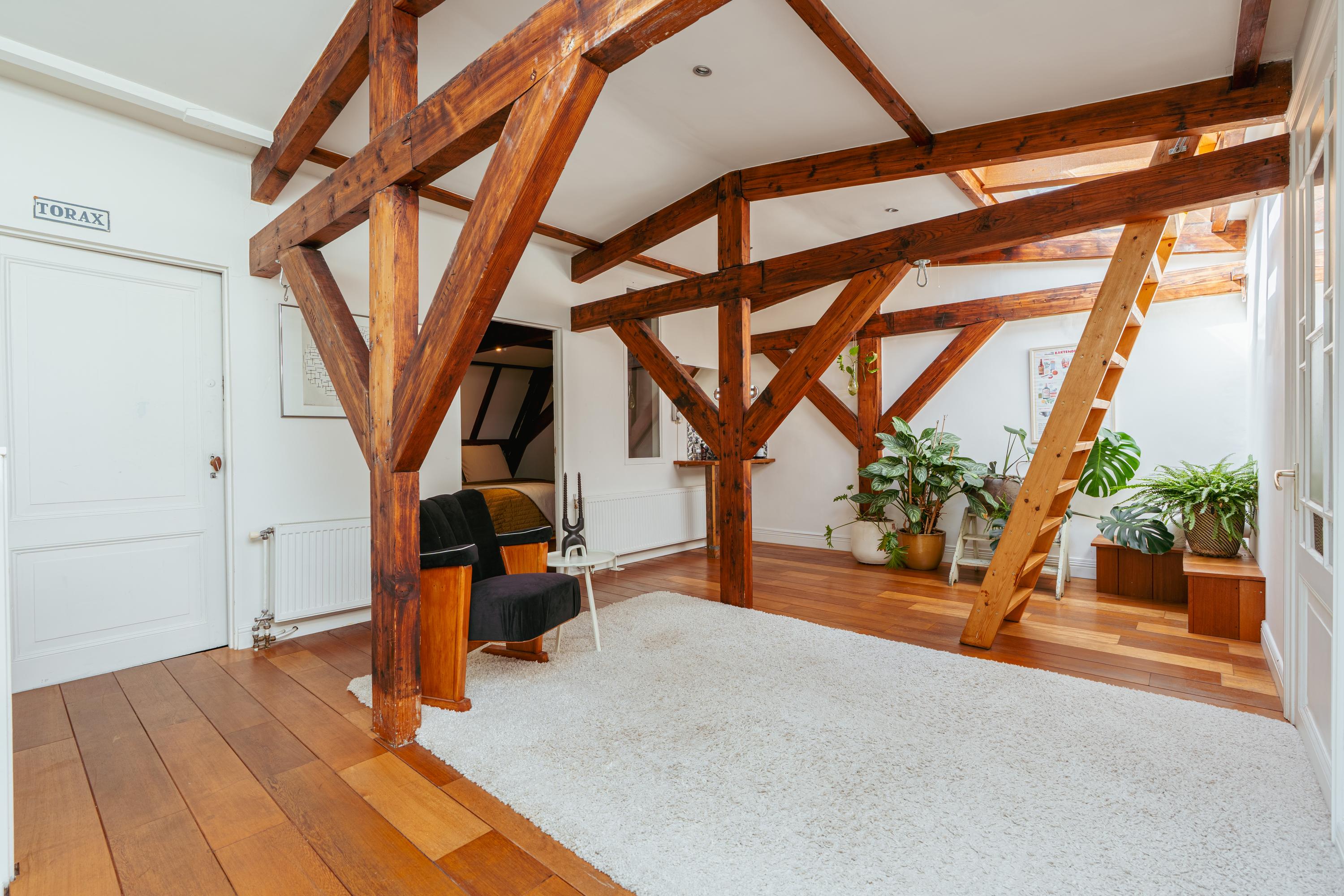 This level features a spacious landing with original exposed wooden beams—perfect as a music room, workspace, or gaming area. The fourth bedroom and a convenient storage room are located at the front. There’s also an additional washbasin on this floor. A staircase leads to the roof, where you can enjoy views of Carré Theatre and even the Rijksmuseum. This characteristic building, designed by architect A.C. Boerma, is constructed of brick accented with limestone blocks and bands. The facade boasts three elegant wooden bay windows adorned with authentic ornaments and fantasy figures. Throughout the home, you’ll find beautiful hardwood flooring, high ornamental ceilings, and original stained-glass transom windows. We invite you, like the current residents, to fall in love with this truly exceptional and spacious home.