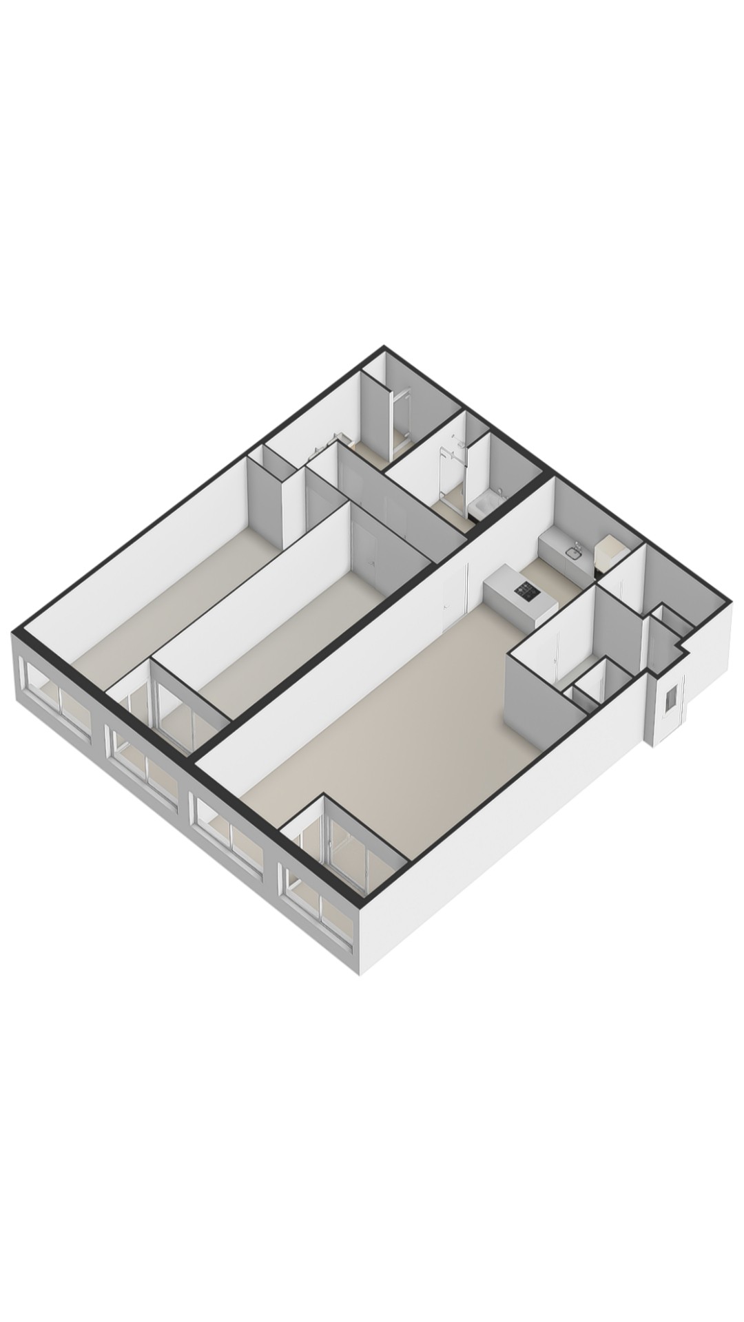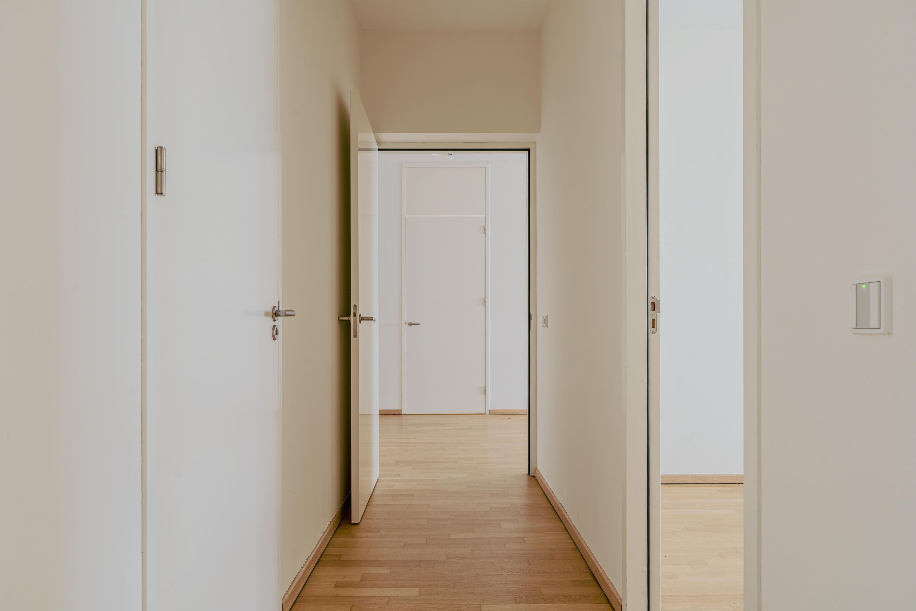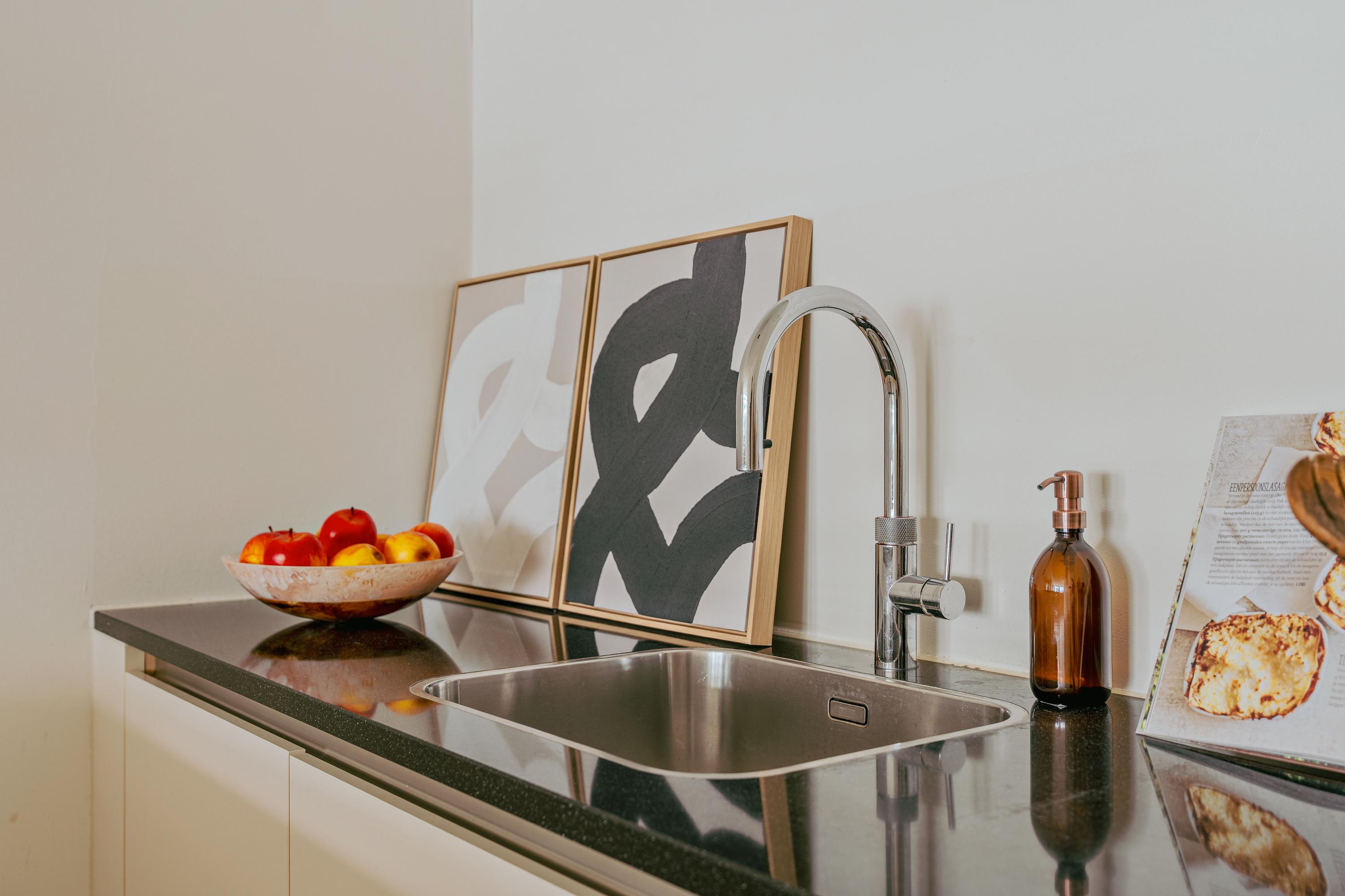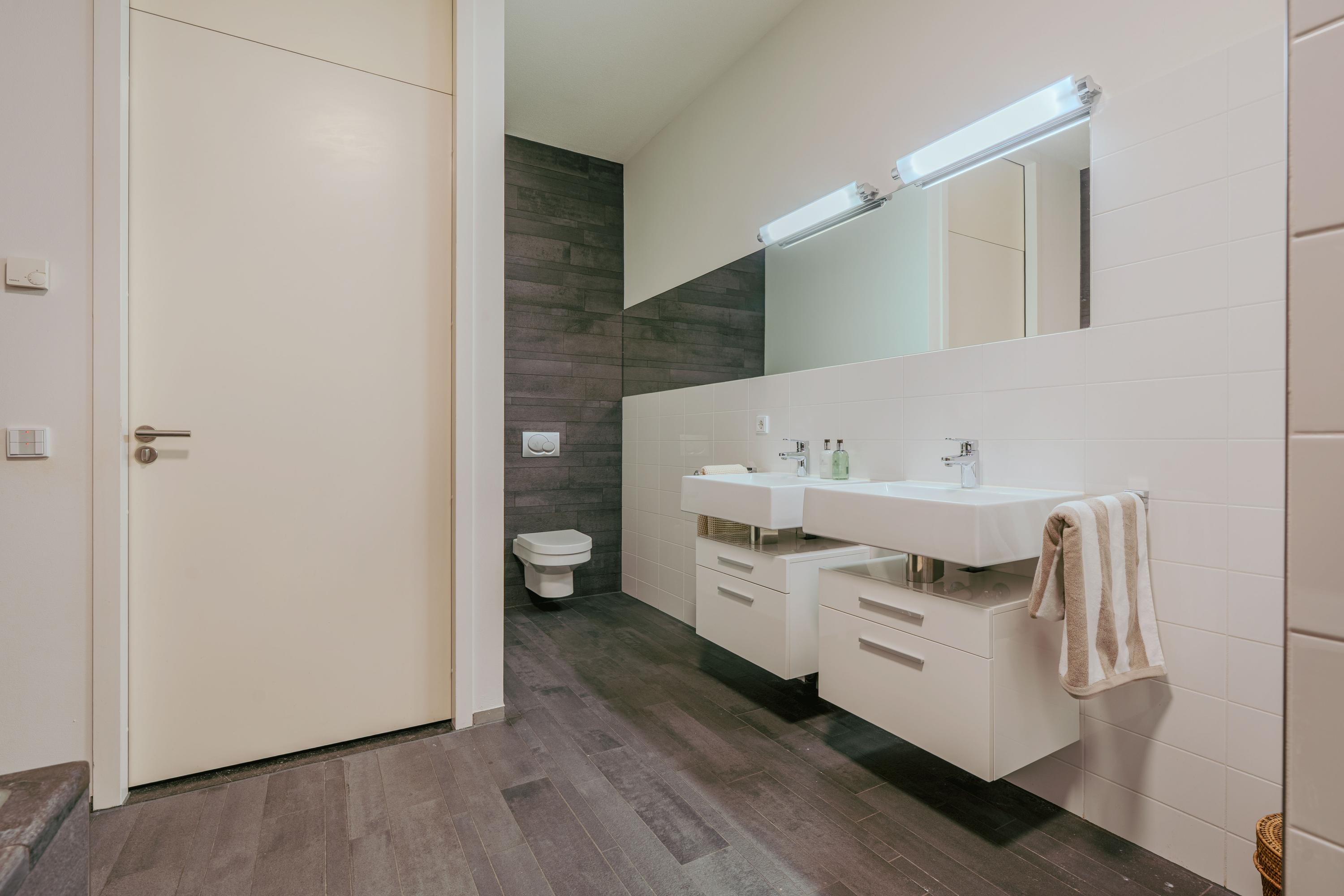 Upon entering, a spacious hallway welcomes you with a meter cupboard, separate toilet, and room for a coat closet. From here, you walk into the expansive and open-plan living room, where the breathtaking views immediately capture your attention. Floor-to-ceiling windows enhance the sense of space and light throughout. At the front of the apartment, you’ll find a sunroom — the perfect spot to unwind, read a book, or simply enjoy the panoramic view. The open kitchen at the rear is equipped with high-quality built-in appliances, including a refrigerator, freezer, induction hob with integrated extractor, Quooker, and dishwasher. A separate utility room offers additional storage space.