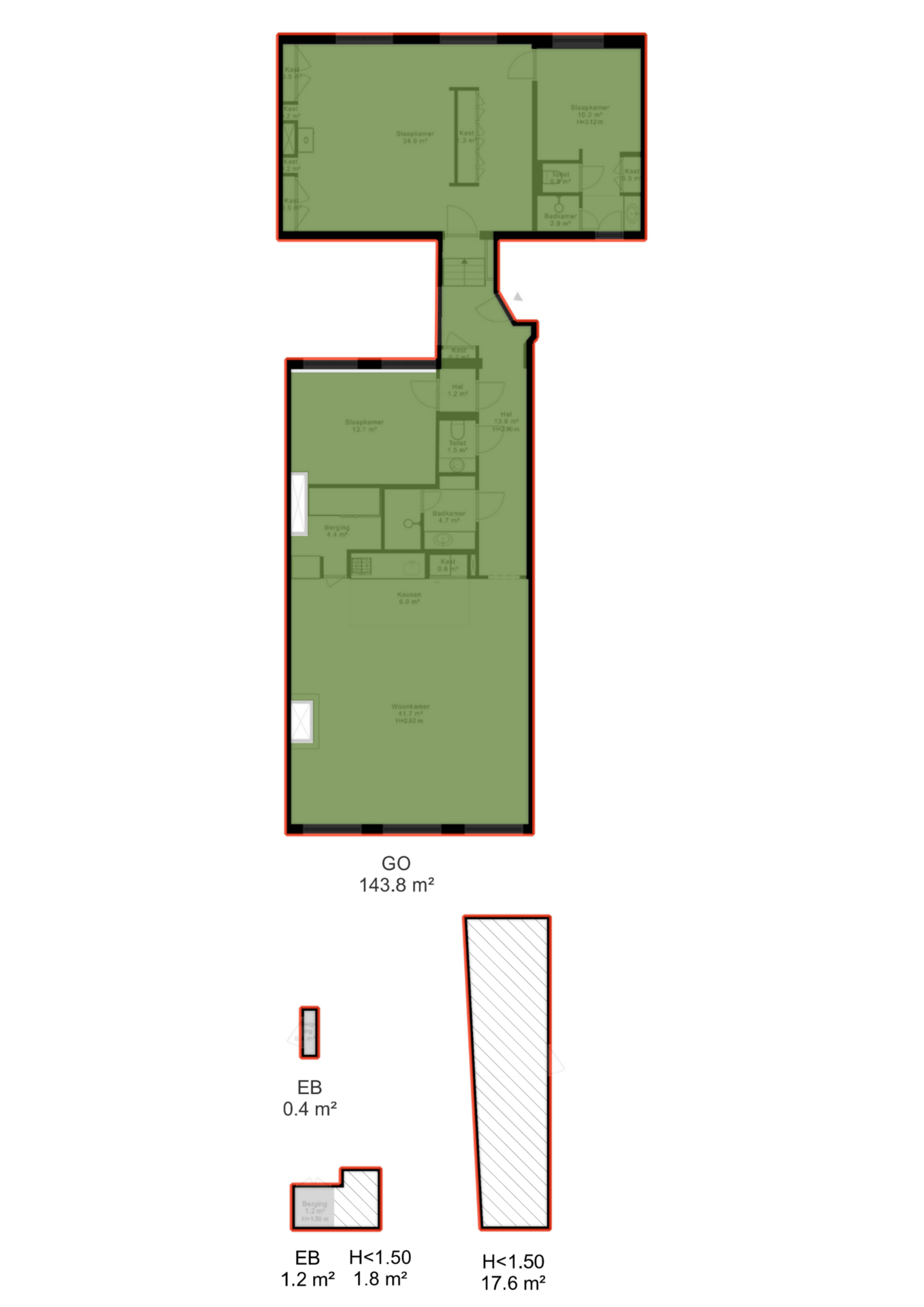 - Gebruiksoppervlakte woning ca. 144m² (NEN 2580 rapport aanwezig);