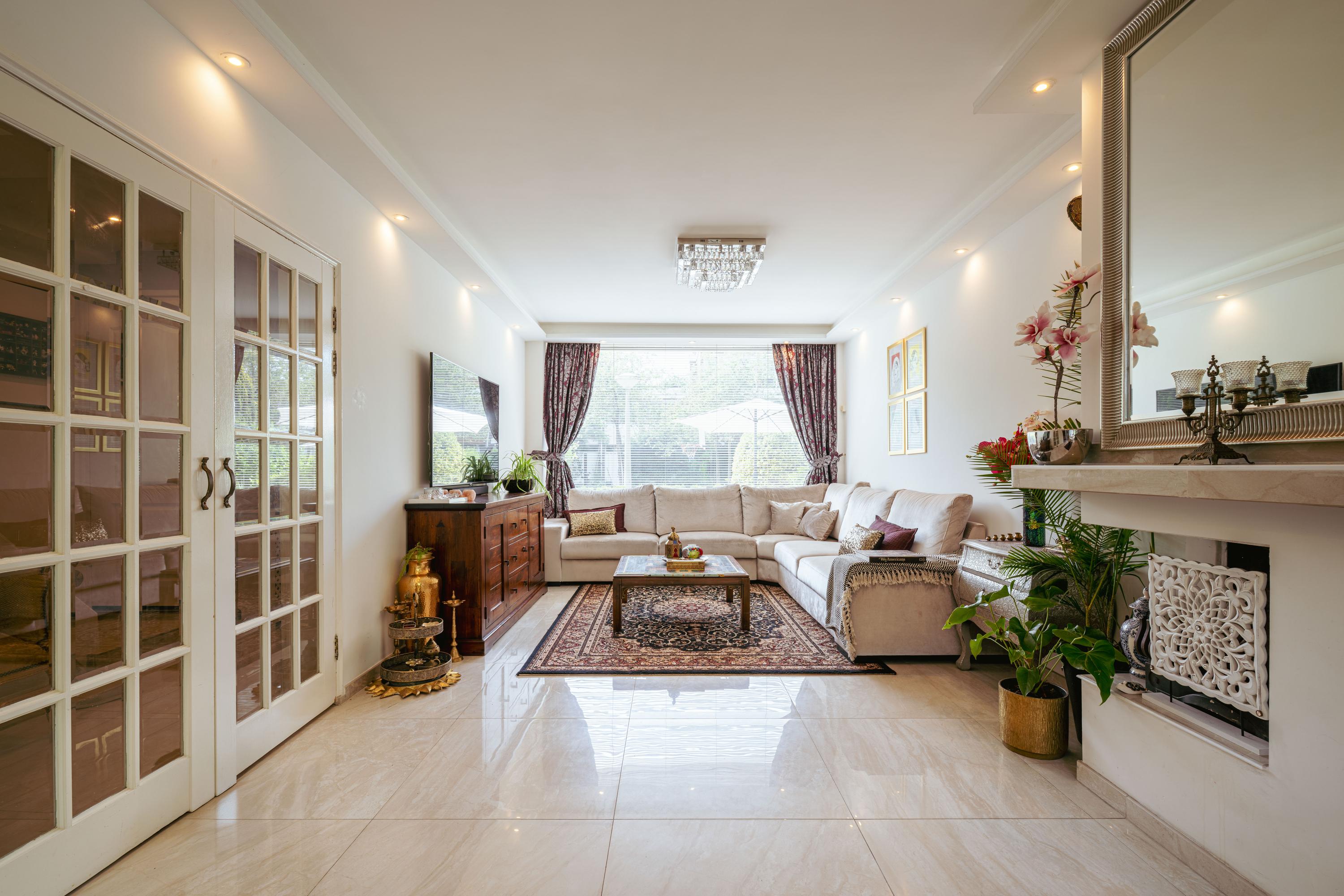 - Spacious living room with semi-open kitchen