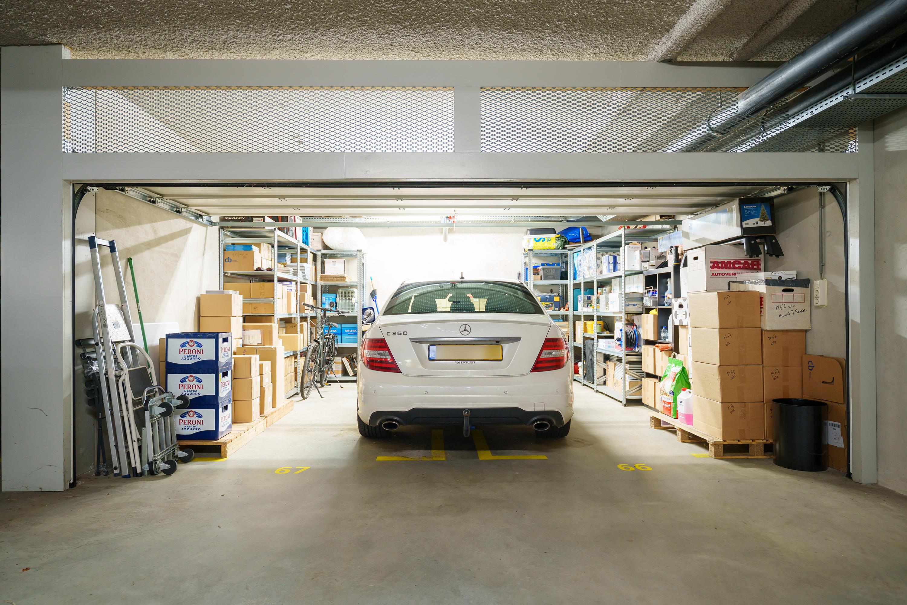 The basement level (22 m²) includes a large, high-ceilinged storage room and access to the parking garage. Directly behind the garage access door is the separate parking space for guests/clients. In addition, there is a private enclosed garage of nearly 28 m², spacious enough for two cars – an absolute rarity in Amsterdam.