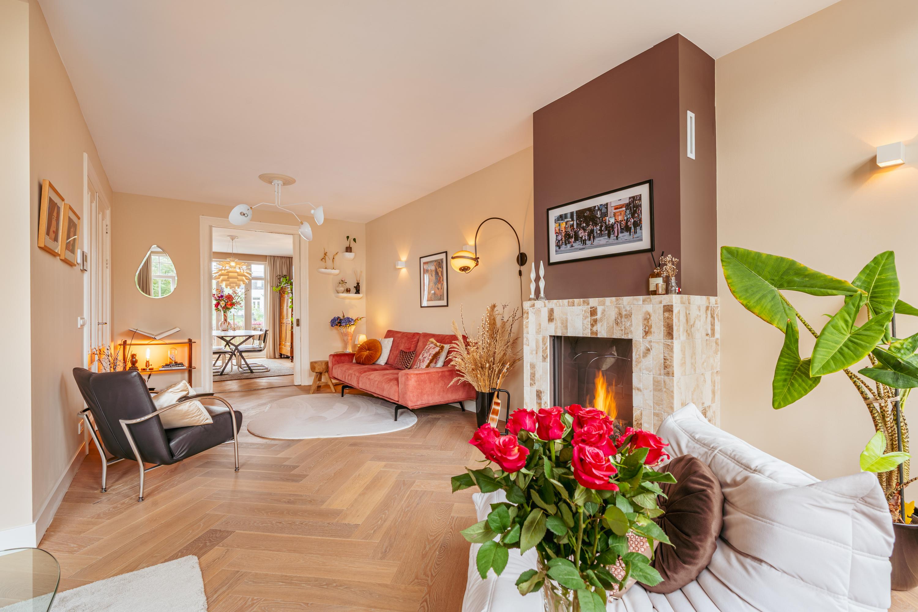 The third floor is the heart of the home and features an exceptionally bright living space with unobstructed views of Artis and the surrounding greenery. A truly unique experience: you can regularly hear the sounds of sea lions, monkeys, and even wolves in the evening, adding a remarkable atmosphere to city living.
