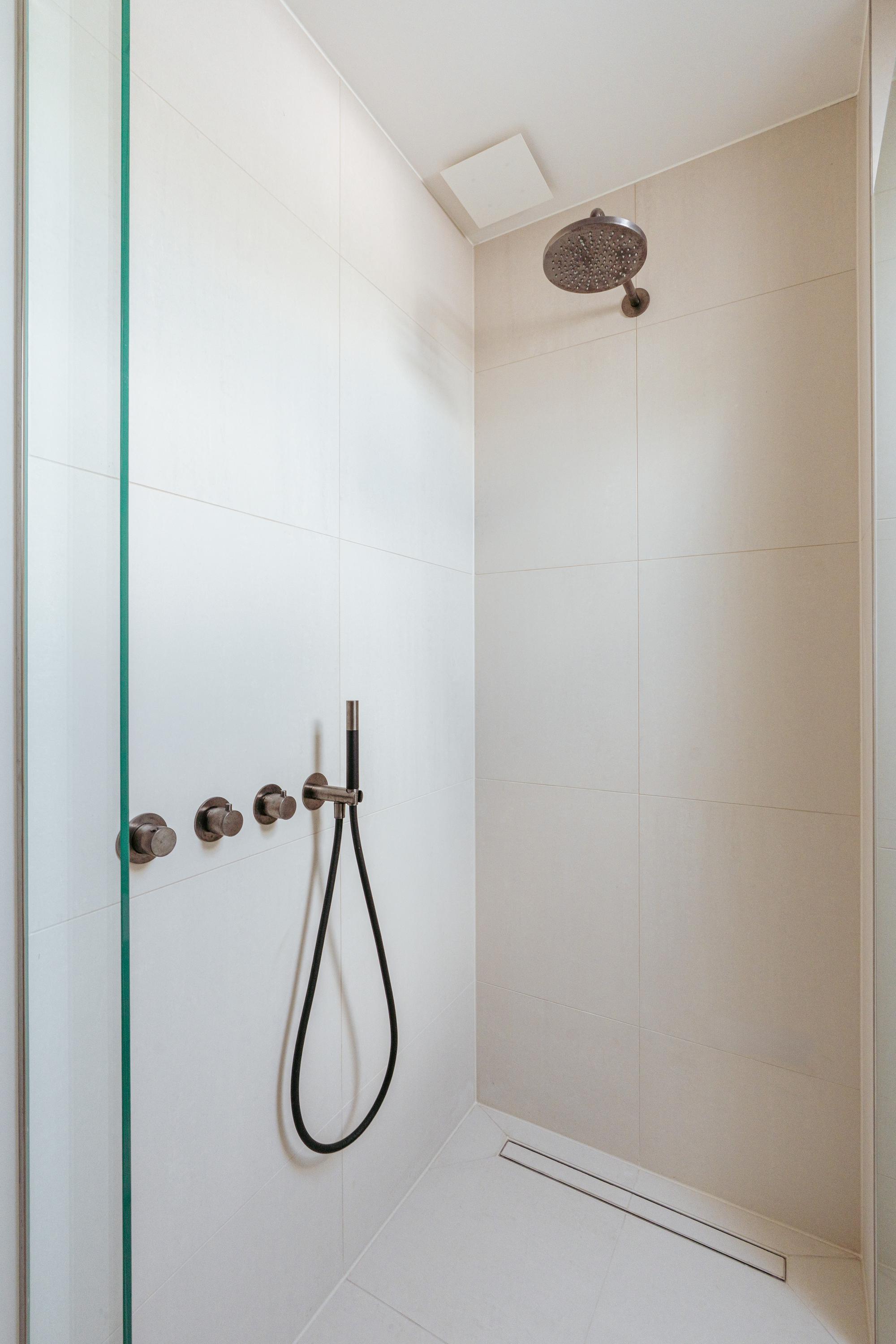 A staircase in the hallway leads to the first floor, where you will find three generously sized bedrooms. Thanks to their large dimensions, it would be simple to create a fourth or even fifth bedroom. The luxurious master bedroom features a freestanding bathtub, an en-suite bathroom, built-in wardrobes, and a spacious walk-in closet. The large bathroom is fitted with a double washbasin, walk-in shower, and WC. On the opposite side of the hallway, the second bathroom is also equipped with a walk-in shower, WC, and washbasin.