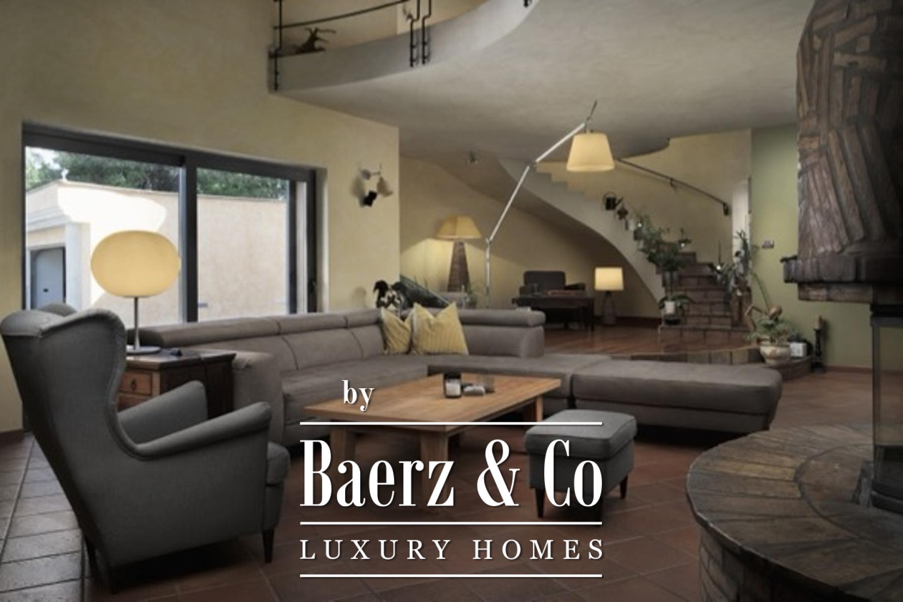 Inside, the 350 m² of living space is meticulously arranged for both comfort and quiet luxury. Five bedrooms provide flexibility for family and guests, with a master suite that includes a private bathroom, walk-in closet, and sauna. The main living area is anchored by a fireplace and flows toward a terrace overlooking the garden. Modern conveniences include a smart home system, fully equipped kitchen, and photo-solar panels delivering 11 kW of energy efficiency. A spacious storage room and five bathrooms further enhance everyday ease.