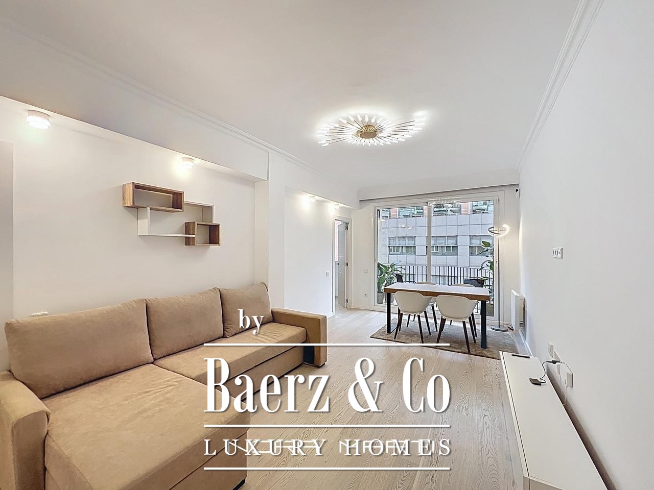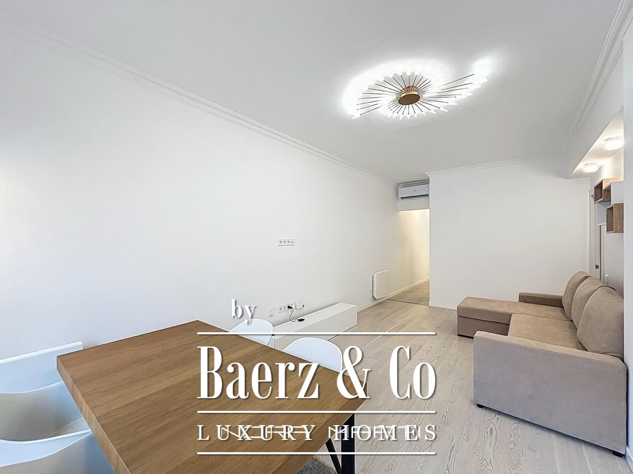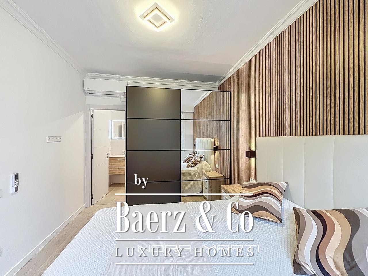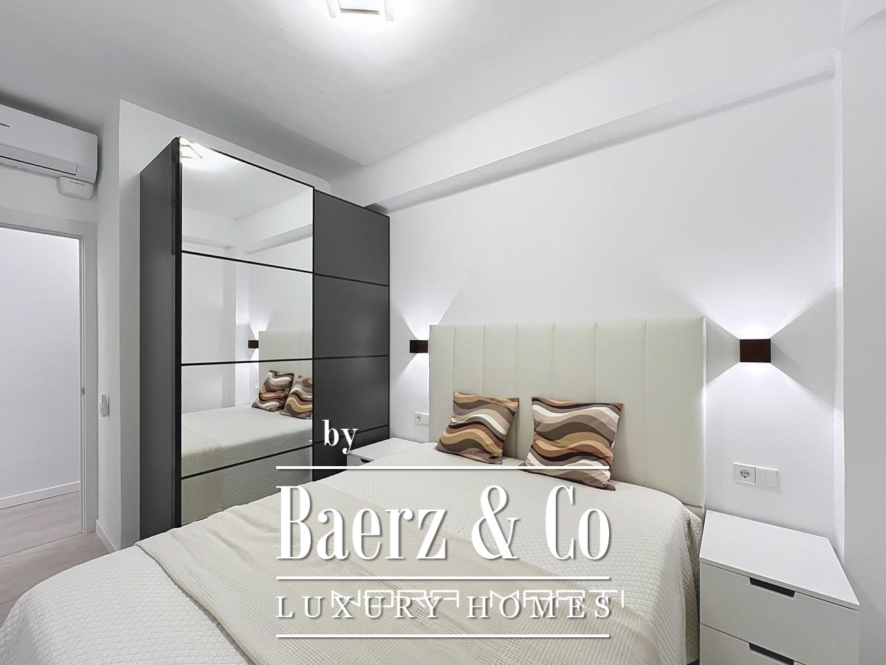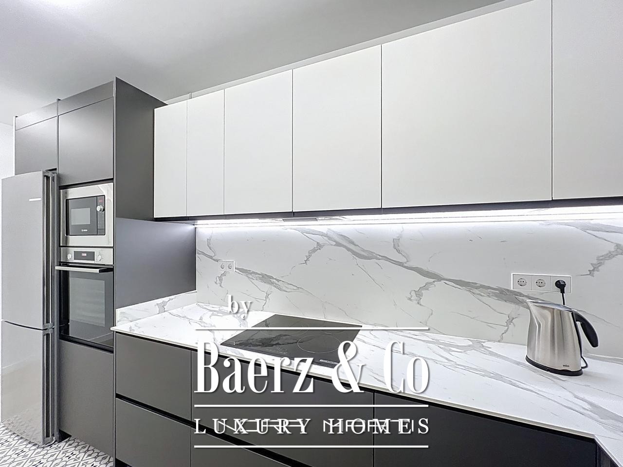 Wooden floors and Climalit double-glazed exterior windows provide thermal and acoustic insulation, while split air conditioning, heat pumps in every room, and low-consumption electric heating create a refined, comfortable environment. This apartment is offered fully furnished and ready for immediate occupancy, reflecting a lifestyle where every detail counts. The property’s sixth-floor position maximizes privacy, security, and natural light throughout the day, culminating in a tranquil city retreat.