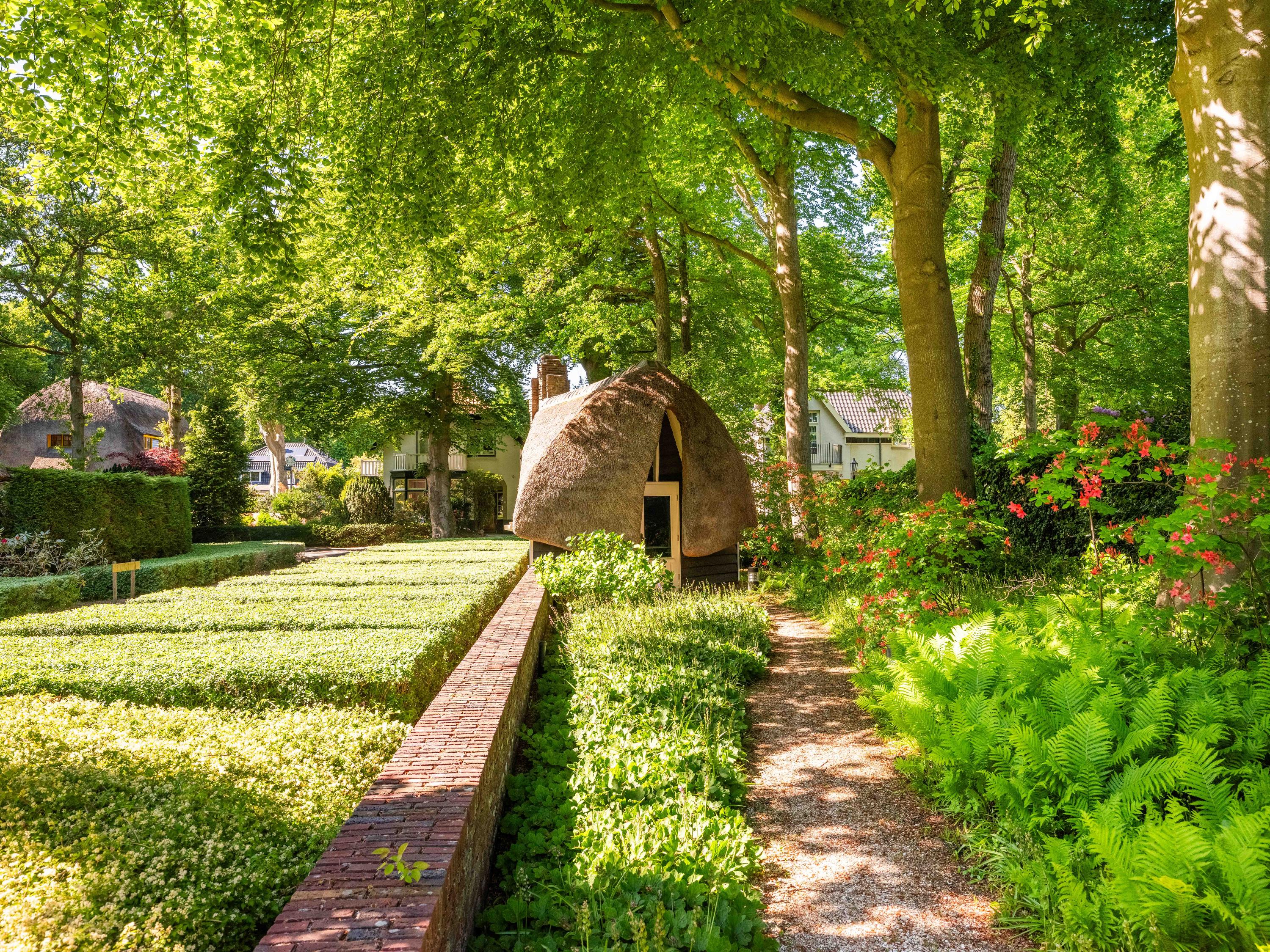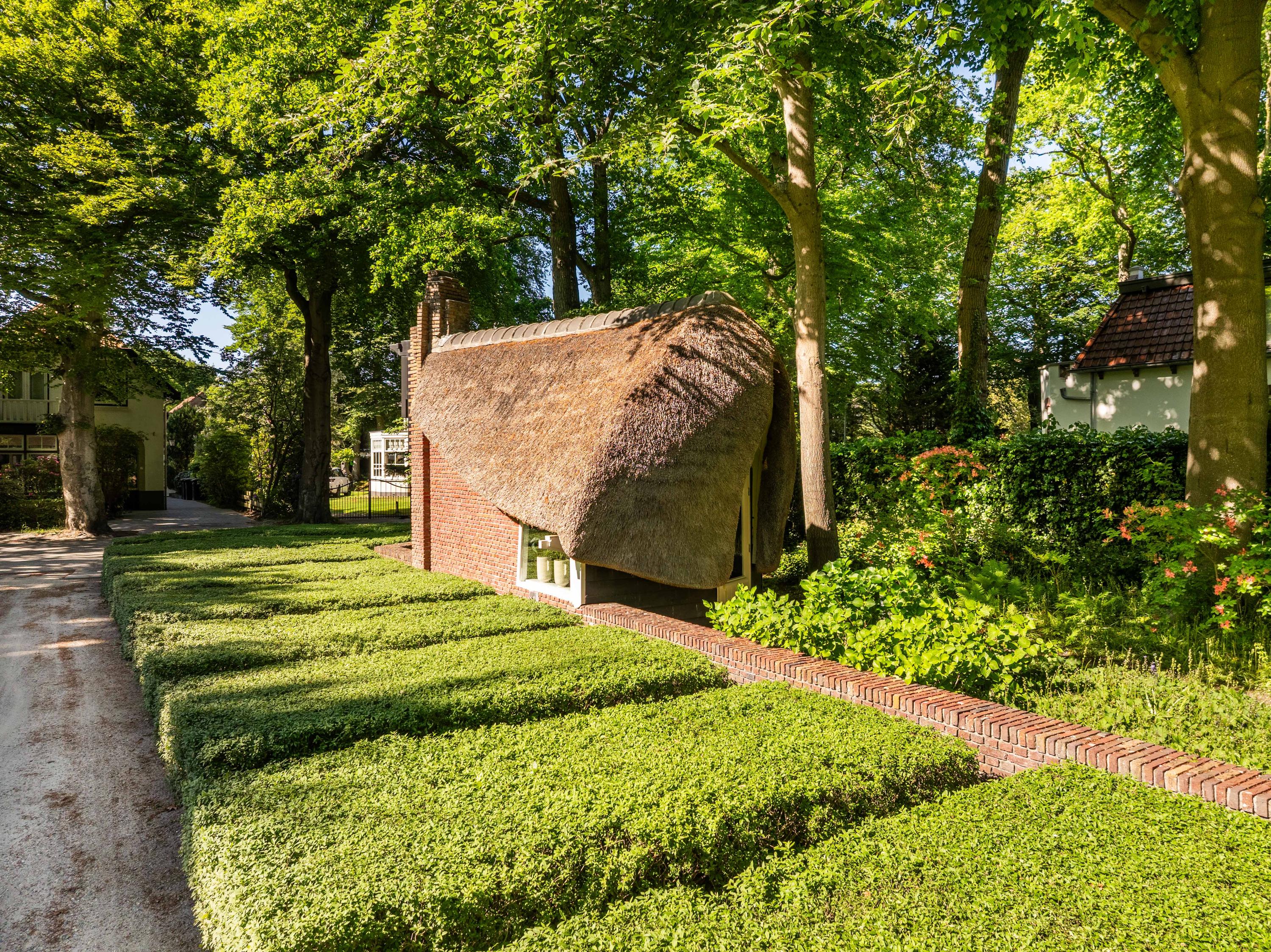 The icing on the cake is the ‘entrance’ cottage, located at the front of the plot, between the privet hedges. This characteristic building with a thatched roof evokes the image of a ‘sloop moored to the Ark’. A delightful workplace with authentic Amsterdam School elements.