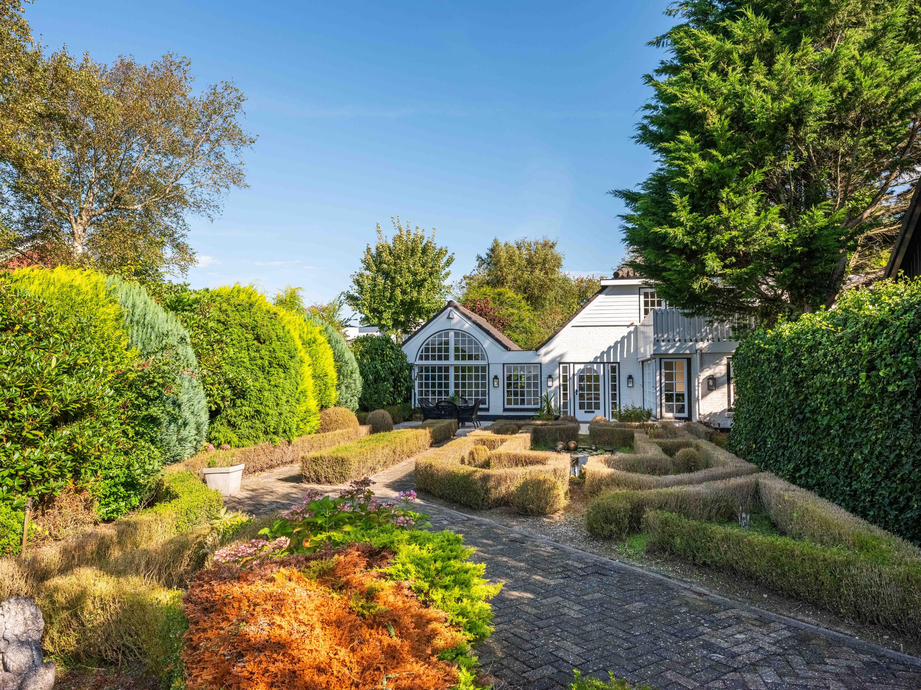 Because the house is at the very back of the plot, the front garden is very generous and offers a surprising amount of privacy. We find a lovely terrace facing south / west, so in the summer months until late in the sun and the sunset can be enjoyed. In front of the plot is parking for several cars and the whole is closed with a gate.