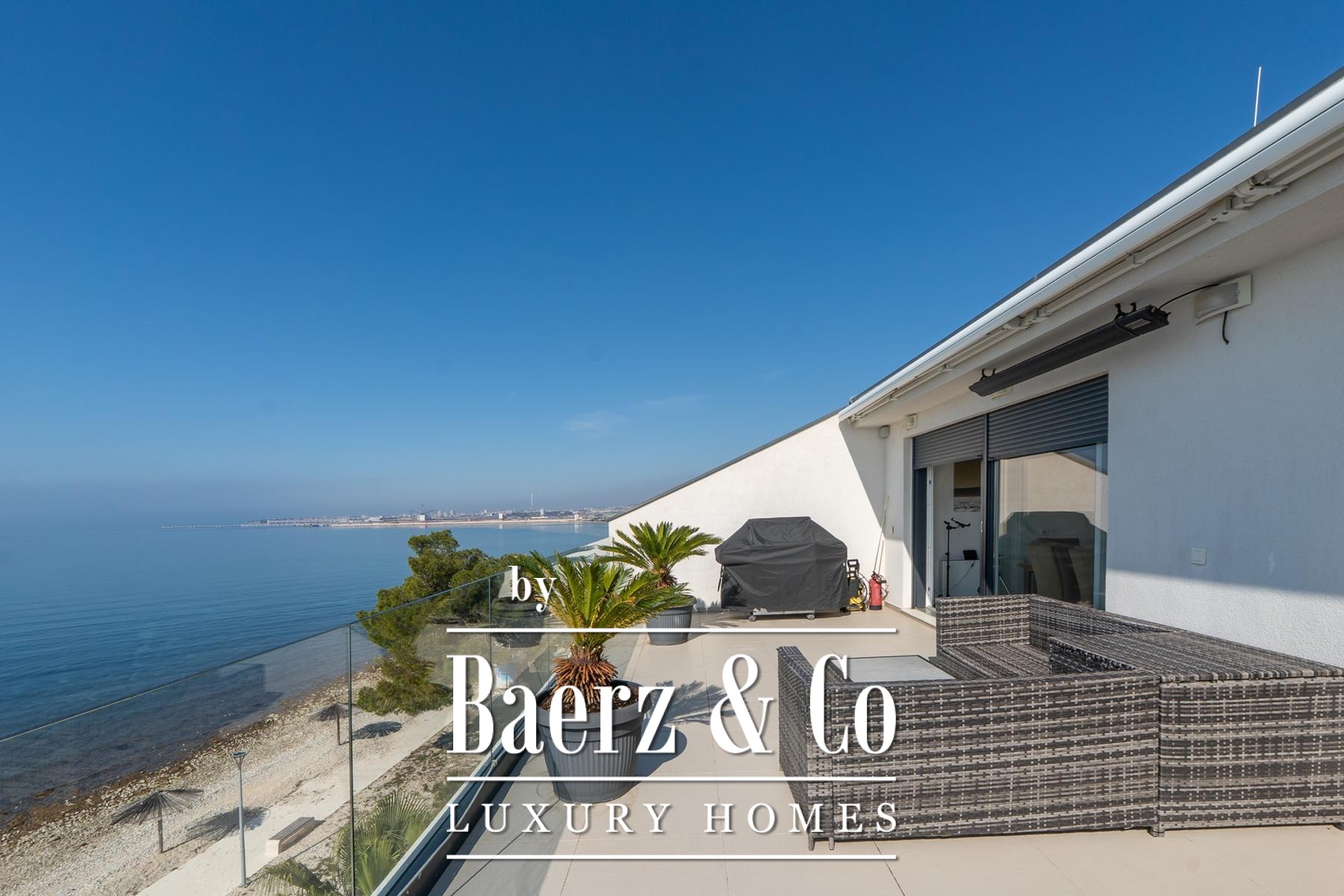 Penthouse Bibinje offers a rare harmony of privacy, space and location, set in the first row by the sea. This penthouse, with a total living area of 153 m², is designed for those seeking both tranquility and proximity to the Mediterranean coastline. The apartment is composed of a light-filled living room connecting seamlessly to the kitchen and dining area, enhanced by two bedrooms and two bathrooms, each space oriented for comfort and daily ease.