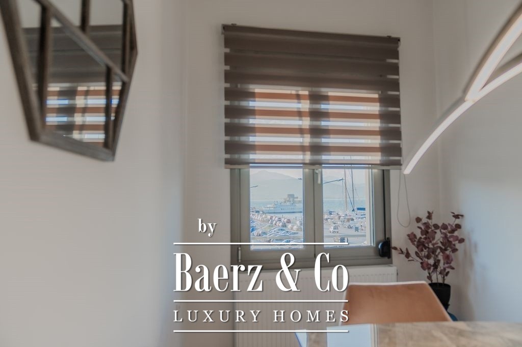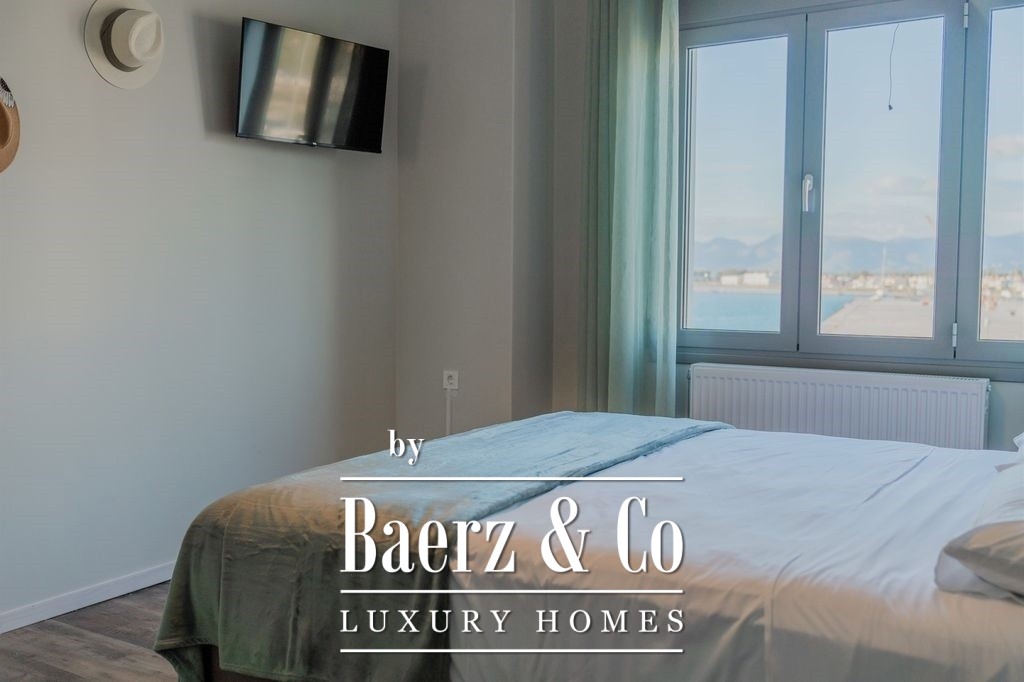 Apartment Nafplio Center presents a rare opportunity to own a 137 m² residence positioned just steps from Nafplio’s storied Old Town. This apartment stands in a league of its own, commanding direct and uninterrupted sea views over the harbor, luxury yachts, and the legendary Bourtzi Castle. From the first moment, the rhythm of harbor life and the endless blue horizon define both the interior and experience of this home.