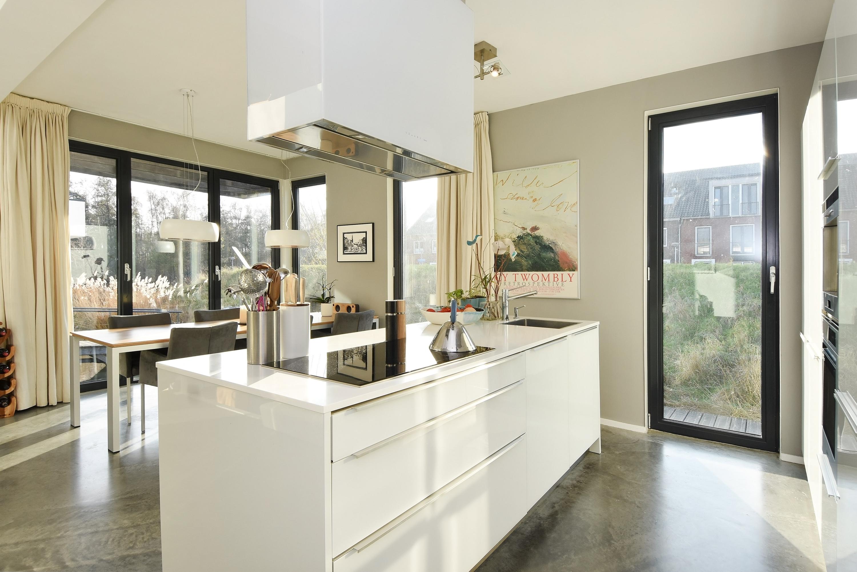 The villa is positioned freely along a shared (communal) jetty next to a small “dike”. This ecological zone with natural vegetation provides plenty of privacy. The home overlooks the water and the beautiful Hof van Delft Park, a lovely place to relax and enjoy nature. The neighbourhood is wonderfully quiet and spacious, with lots of water and greenery—offering a true sense of space and freedom.