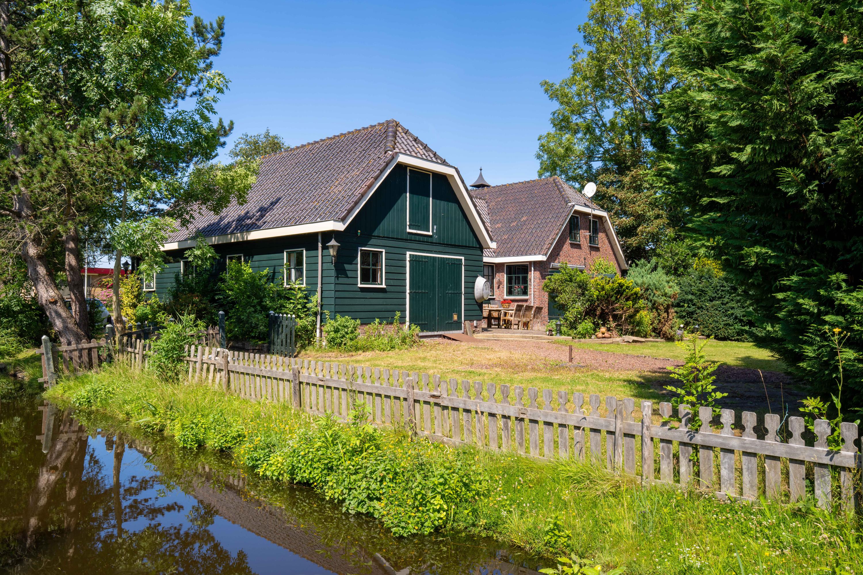 Boerenvilla Den Ilp anchors 312 m² of refined living on an expansive 4,460 m² private plot, offering a rare blend of seclusion and immediate access to open water within the Amsterdam Wetlands. This farmhouse villa, a creation of architect Tom Markus, is distinguished by enduring materials, nostalgic masonry facades, iron anchors, and wood shutters. Its classic roof and meadow frontage evoke a sense of history, crafted for contemporary comfort.