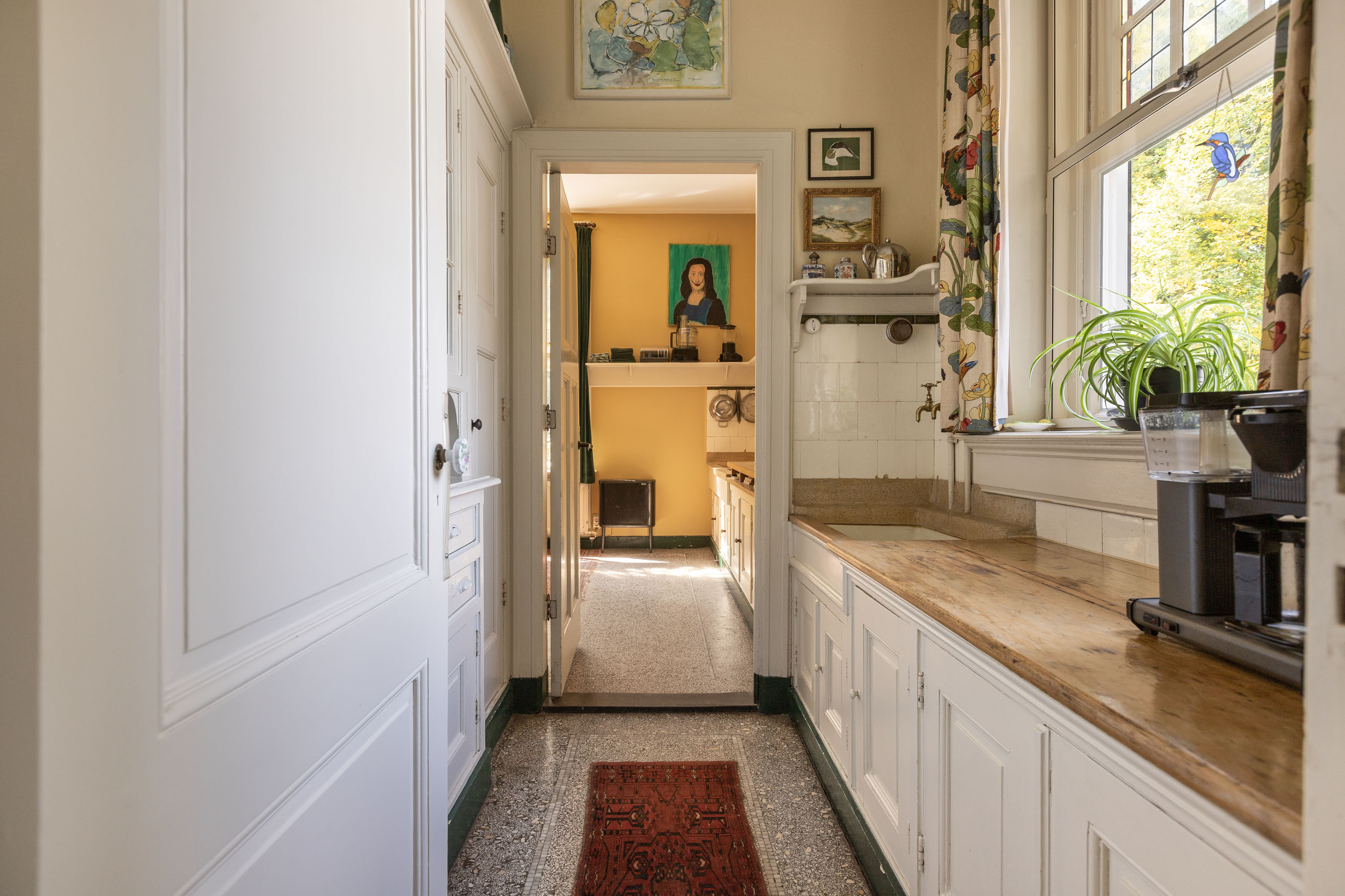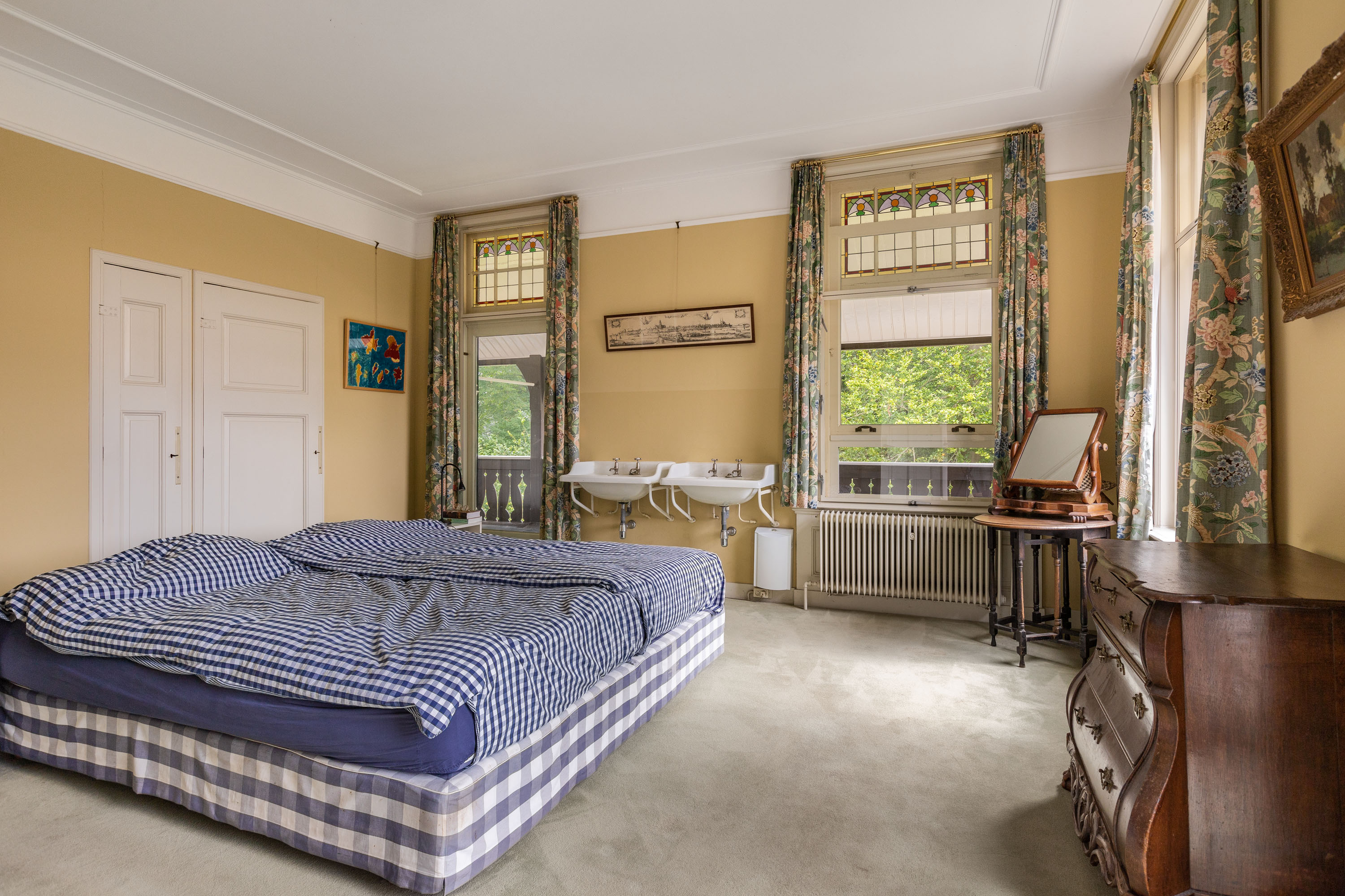 This villa, built in 1901 and designed by architect Karel J. Muller in chalet style, is a national monument. Architect Muller is known for projects such as the Rijksmuseum in Enschede, Tuindorp 't Lansink in Hengelo and several prestigious country houses in Twente. The villa was originally commissioned by Otto Stork, a member of a well-known industrial family. After nearly a century of family ownership the Overijssels Landschap Foundation purchased the Lonnekermeer estate in the early 2000’s including this villa, which was later sold to the current residents with the land leased on a hereditary basis. At the time the house was in a poor state of repair and was subsequently restored to its former glory, preserving its original character and many authentic details. Features such as the terrazzo floors and the original parquet flooring remain intact. The numerous built-in cabinets and service cabinets in the kitchen and pantry are still present. The three fireplaces, two bathrooms and five toilets, most of them with unique facilitary facilities, are also still part of the property. Some original light fixtures have been preserved, as well as the apple drying cabinets in the basement. The many windows provide a very pleasant natural light and offer phenomenal views on all sides. Nearly all transom windows contain stained glass. Despite its age and the focus on preserving details, the villa offers modern comfort. The entire villa has secondary glazing, cavity walls and an insulated roof. In 2023 a pellet stove system, a wood stove and a heat pump boiler were installed. Thanks to careful and systematic annual maintenance supervised by the Monumentenwacht, the house is currently in excellent condition. A structural report is available.