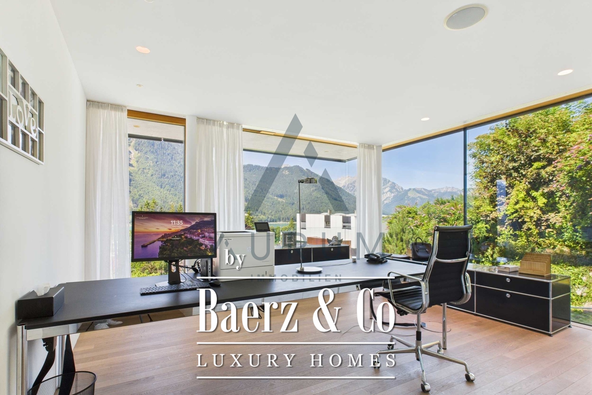 This property combines high-quality construction, clear architecture, and an exceptional location with a lake view.