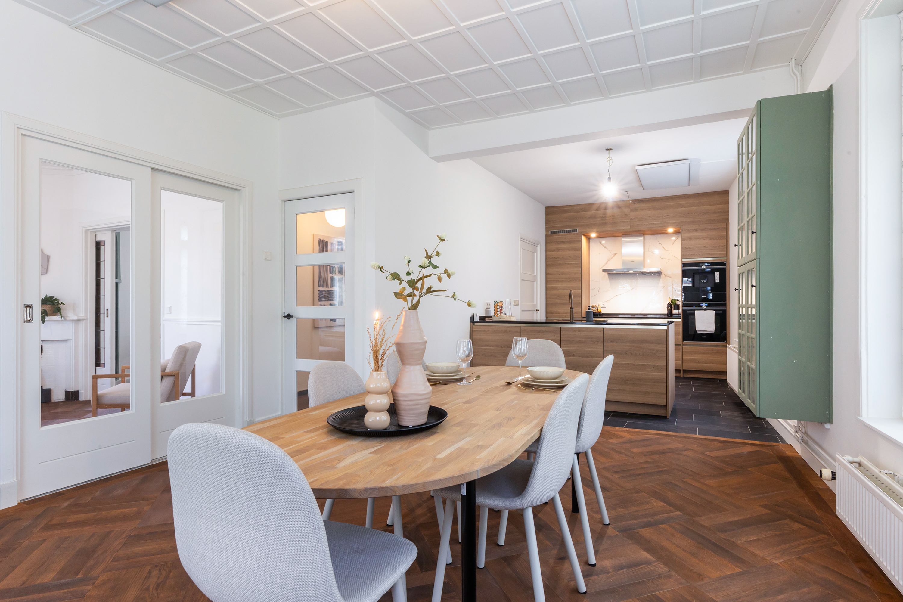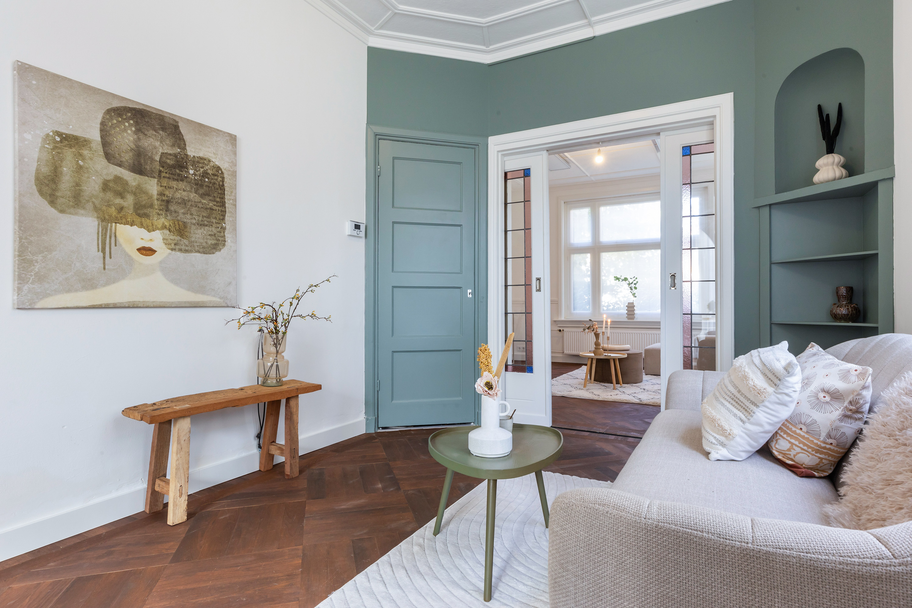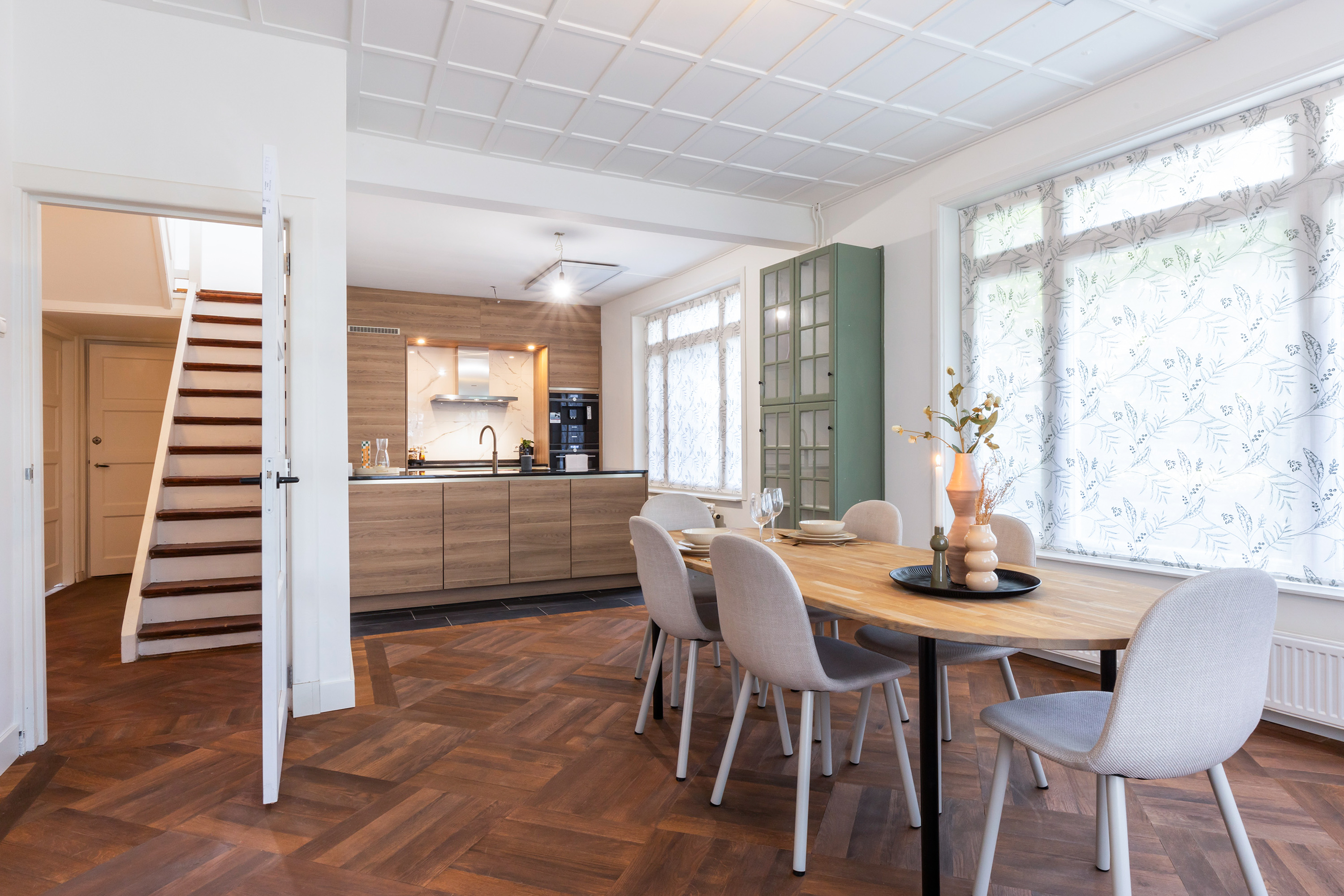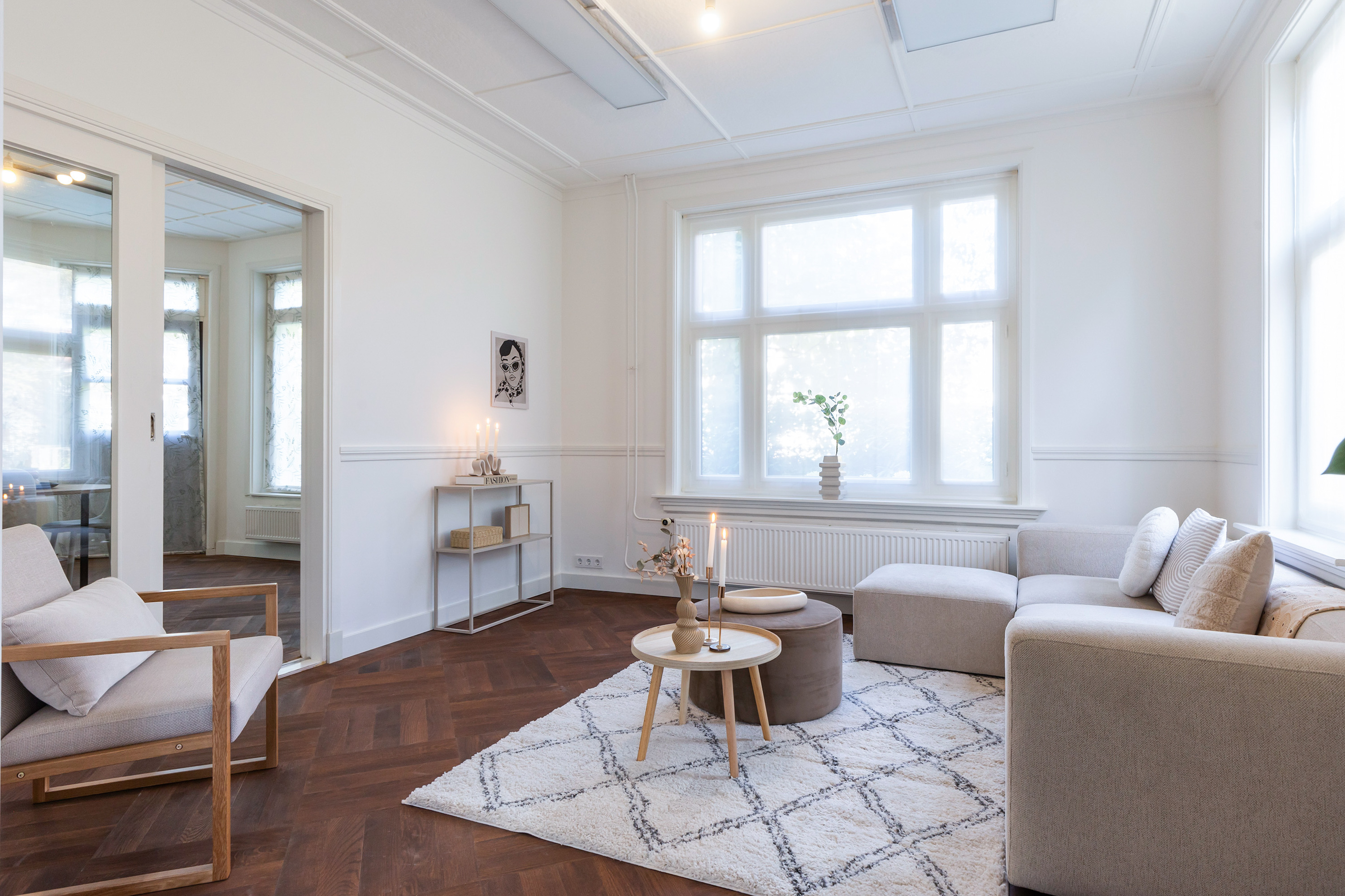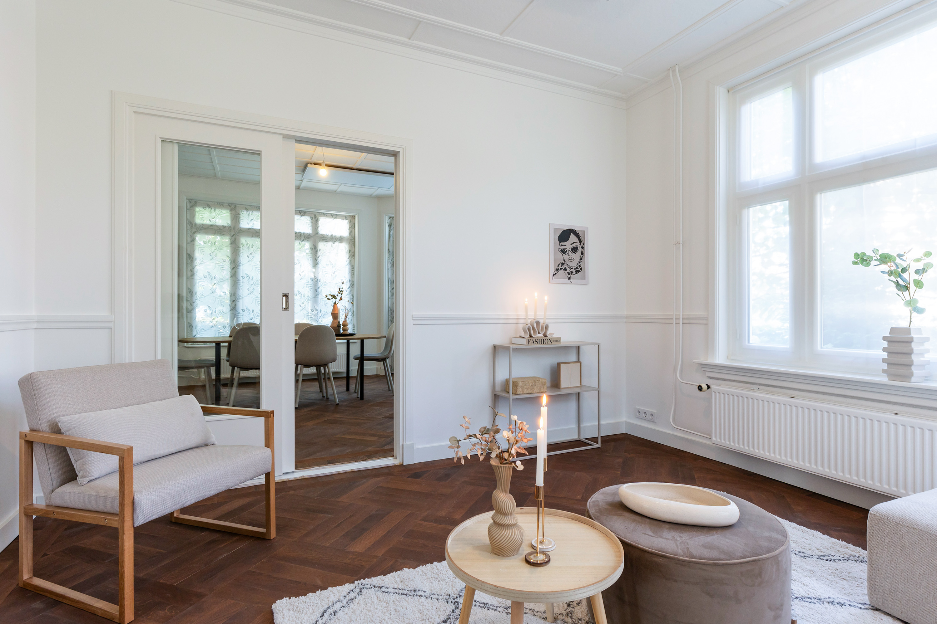 The villa underwent extensive modernisation in 2024 and 2025 and now radiates understated luxury. The finish is elegant and of high quality, with all key features renewed. Highlights include a luxurious Siematic kitchen with Siemens appliances, new HR++ frames and kitchen façade, a refined bathroom, a renewed toilet, and a stunning oak parquet floor in Art Deco style with a warm Frans Hals colour palette. The walls have been finished in a soft, warm hue, while the original panelled doors and authentic ceilings have been carefully preserved. A new central heating system (November 2025) with boiler, updated fuse box and three-phase power supply ensure maximum comfort.