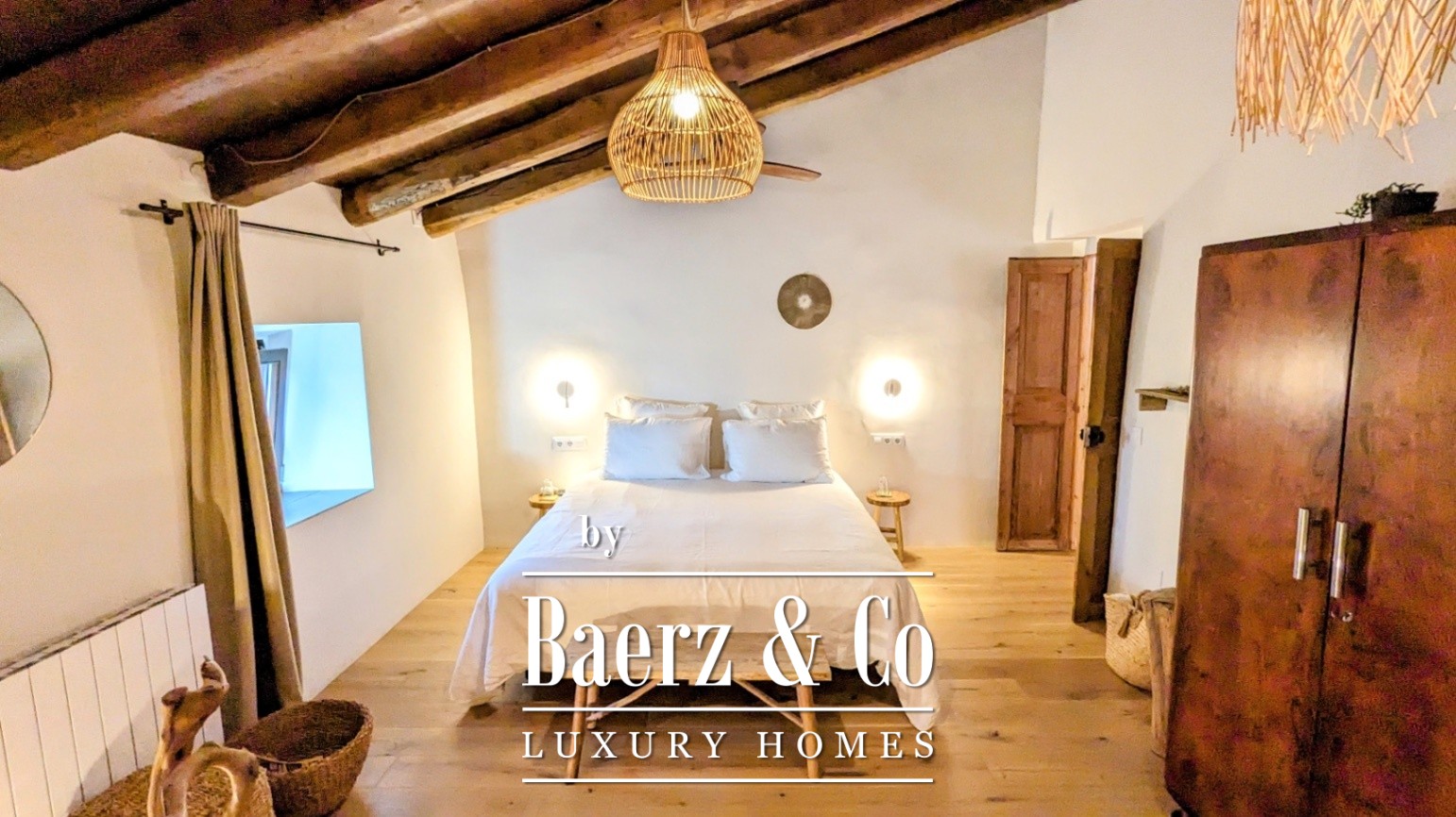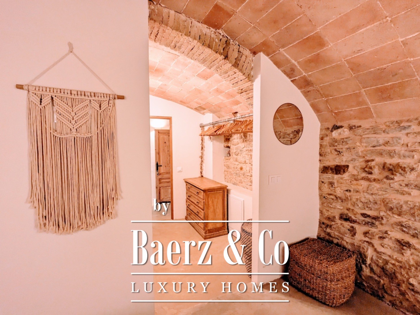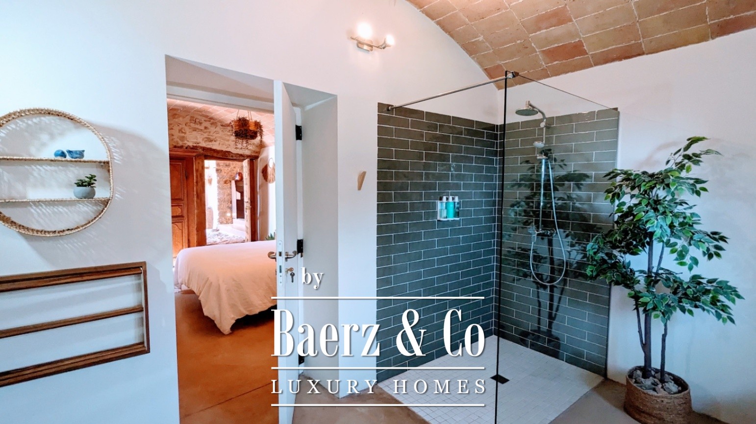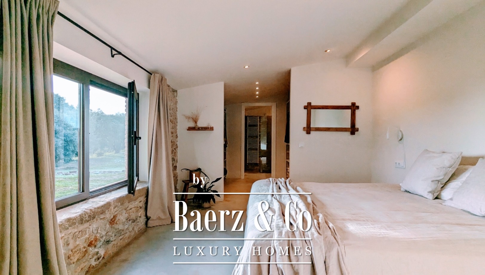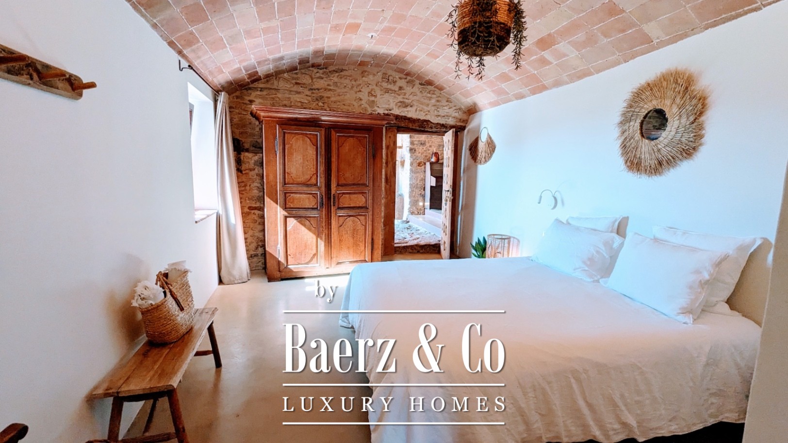 Within the 1,000 m² of living space, the main farmhouse breathes with vaulted ceilings, polished concrete, natural stone, and solid oak. Antique stone floors ground the entrance, giving way to open-plan spaces that foster calm and connection. The estate is divided into three distinct sections: the original 650 m² farmhouse, a private 150 m² residence, and a caretaker’s 200 m² apartment. Across nine bedrooms and eight bathrooms, multiple guest suites offer private terraces and garden access. A covered and an open terrace, a professional kitchen, and original fireplaces transcend seasonal boundaries.