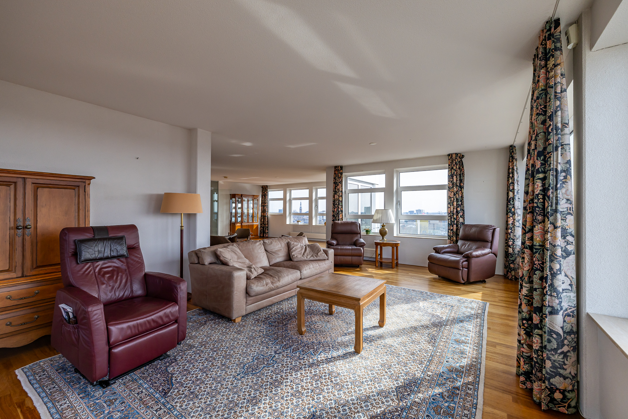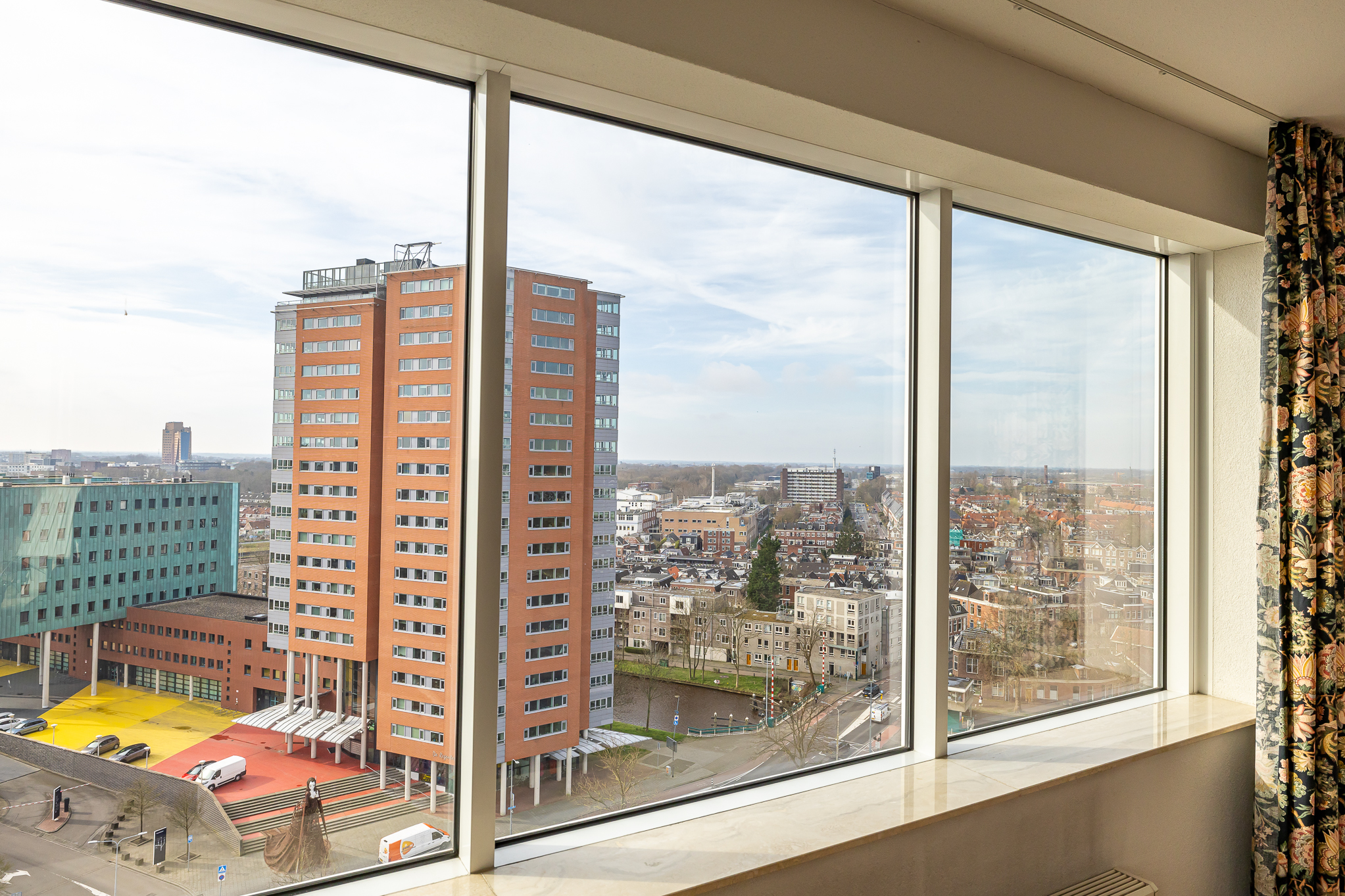 Penthouse Groningen is a rare residence offering refined urban living at the edge of the city’s historic heart. This exclusive penthouse provides 263 m² of living space, where floor-to-ceiling views extend over the Verbindingskanaal, the Zuiderhaven, and the tree-lined Praediniussingel. The property’s distinctive design, achieved by uniting two penthouses, creates a spacious layout with four bedrooms and two bathrooms, including features such as a whirlpool, sauna, and steam cabin.