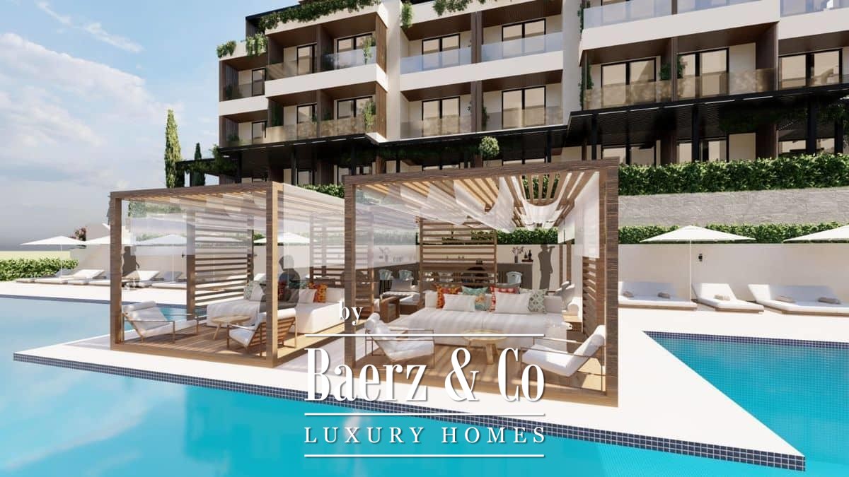 The building has 3 floors, while the apartment is on the 3rd floor. The complex will have a pool and a children’s playground. There is an option of buying a garage spot for 25 000e. The building is connected by an asphalt road to the main road. Construction of the project is in progress and it will be finished in September of 2026.