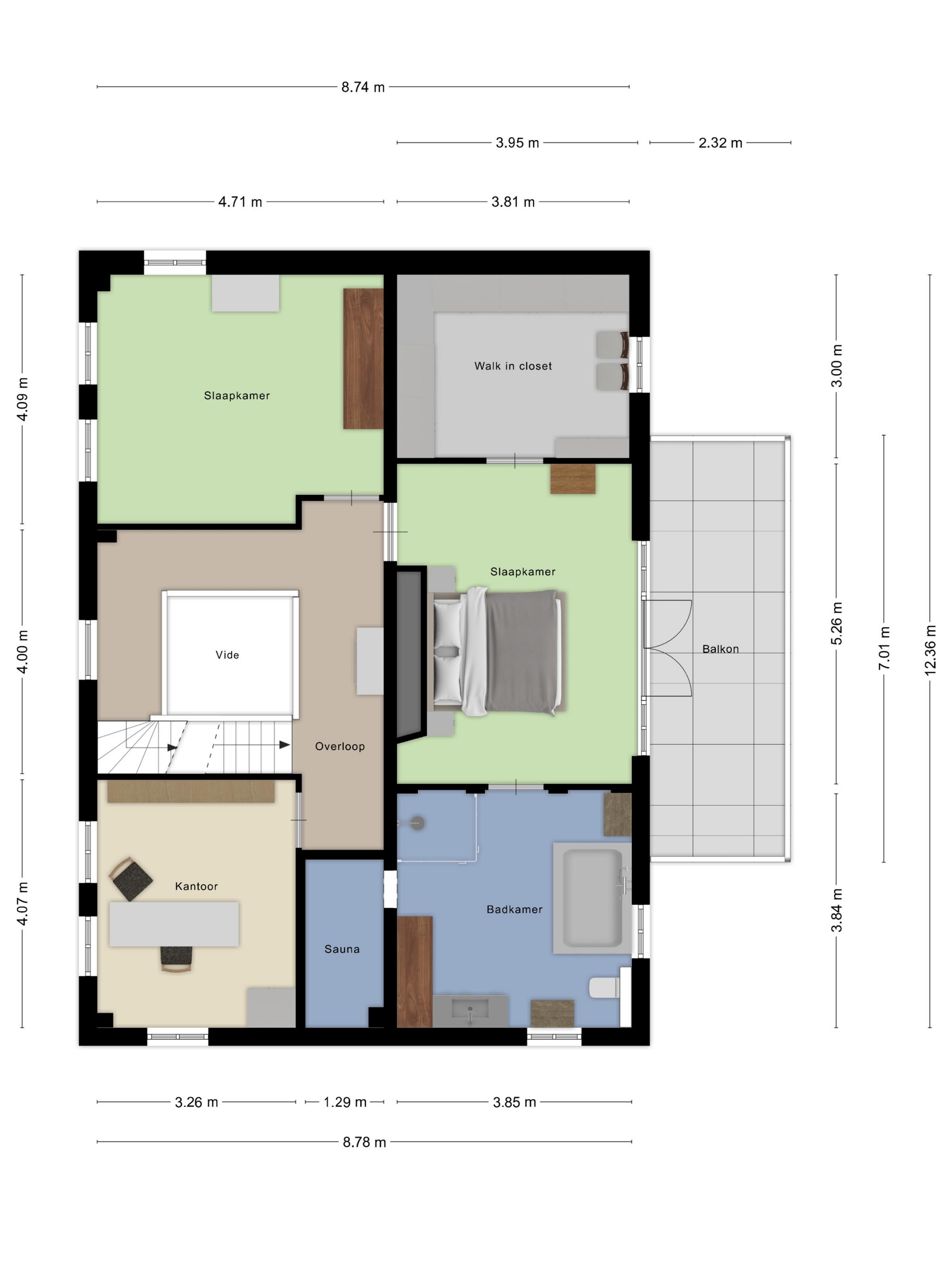 vanuit de overloop een trap naar de 2e verdieping.