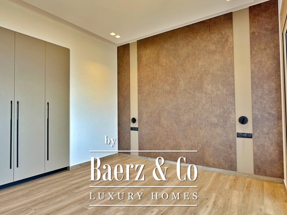 Carefully arranged across three levels and connected by both an internal staircase and an elevator, the villa is designed for refined privacy and effortless flow. The basement is dedicated to personal retreat and activity, featuring a bedroom, toilet, playroom, gym, and laundry room. The main floor introduces spacious open living with a living room, kitchen, dining area, a flex office-utility room, and a guest bathroom, while the upper level comprises three bedrooms, three en-suite bathrooms, and a secondary kitchen for added versatility.
