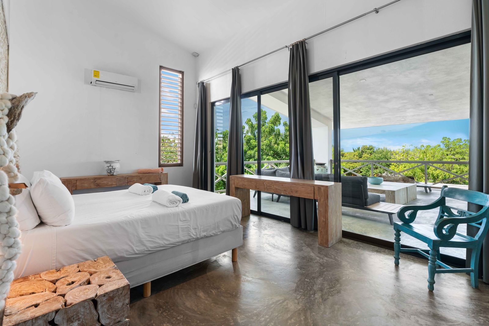 Thoughtfully designed and comfortably furnished, the villa offers plenty of space for everyone. With 7 bedrooms and 7 bathrooms divided into three independent units (two 2-bedroom apartments downstairs and one 3-bedroom penthouse upstairs), there’s ample privacy and flexibility for families or groups traveling together.