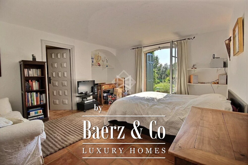 The setting includes a pool house with barbecue, stone outbuilding, and a car shelter accommodating four vehicles. This luxury villa for sale in La Colle-sur-Loup enjoys optimal sun, far-reaching views, and evident tranquility, inviting a considered pace of life.
