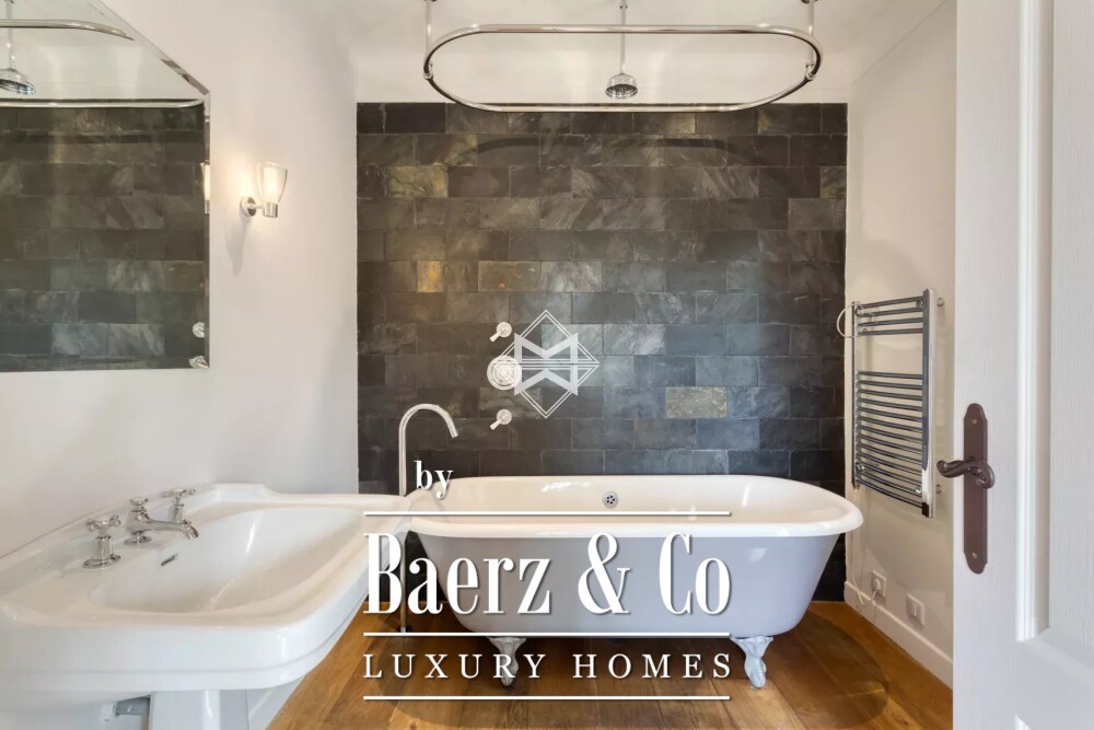 Upstairs, five bedrooms include a generous master suite with a private terrace, along with two additional en-suite rooms. Two further bedrooms share an independent bathroom with both a bathtub and separate shower, balancing privacy and comfort for guests or family.