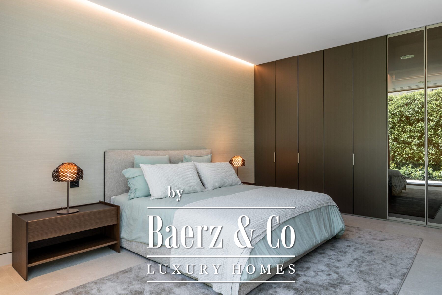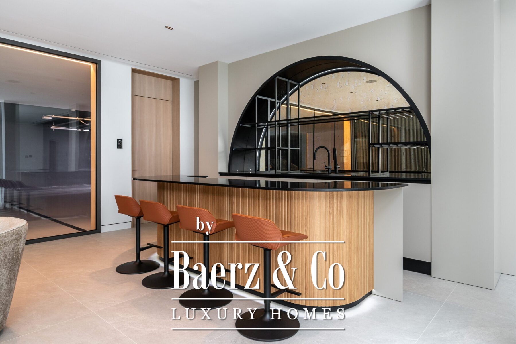 The basement is designed for fun and relaxation. It includes a large room that can be used as a home gym, game room, or extra living space. There’s also a cinema room and a bar with a reception area, perfect for entertaining guests. The basement has a laundry area and a guest toilet, along with an additional en-suite bedroom that offers privacy for visitors or staff. The garage is spacious enough to fit up to eight cars.