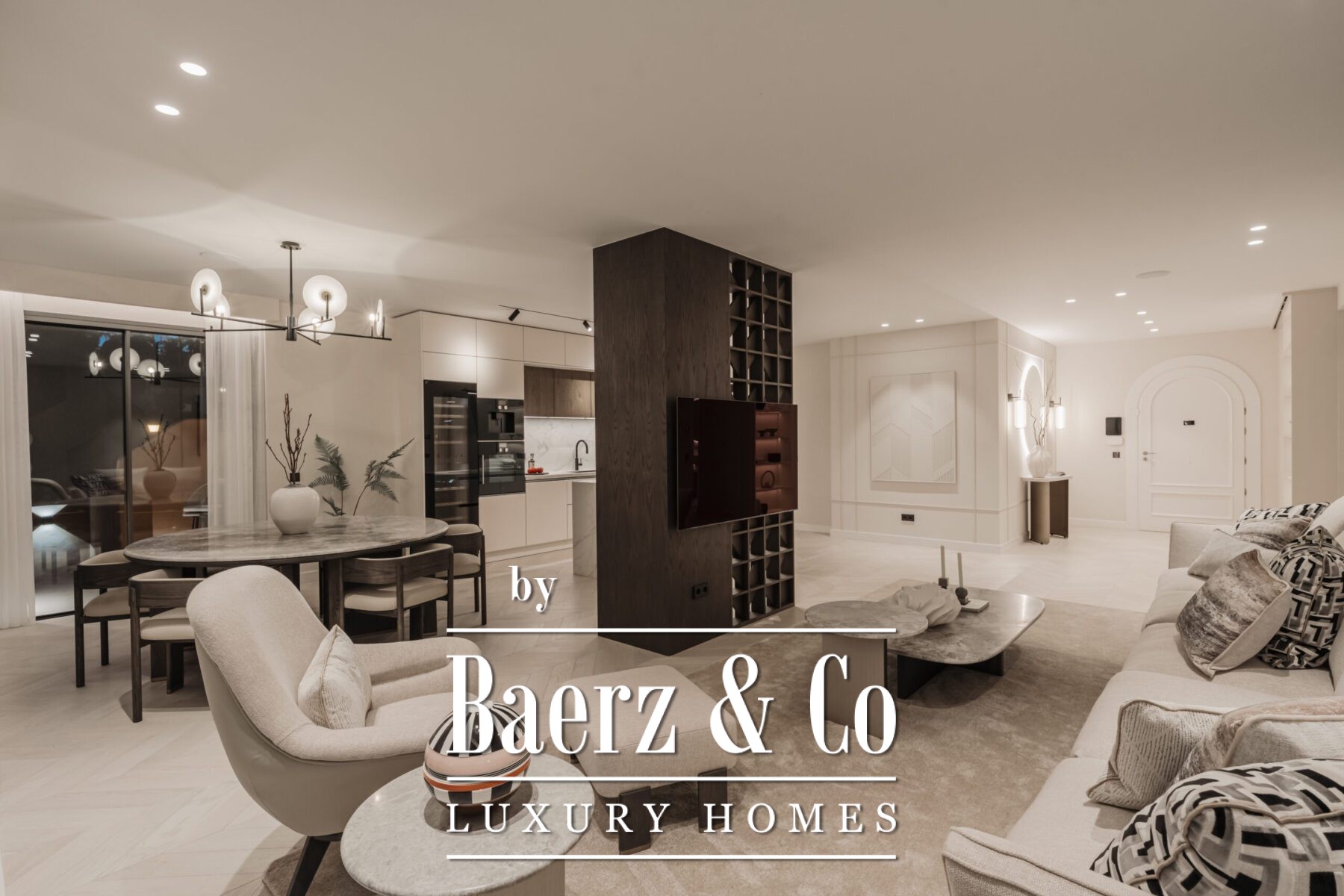 Within this secured, gated enclave with 24-hour security, the four-bedroom, four-and-a-half-bathroom home reveals refined details. Floor-to-ceiling windows illuminate the open living and dining space, seamlessly extending to a spacious terrace designed for tranquil hours or entertaining under the Marbella sky. The kitchen is appointed with Gaggenau appliances, complemented by natural oak floors and an intuitive smart home system, underlining discreet luxury and ease.