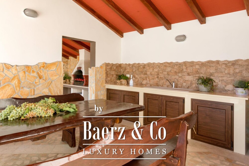 Outdoors, a 32 m² heated swimming pool lies at the heart of the Mediterranean-style garden, bordered by indigenous stone and sheltered by mature greenery. The summer kitchen and sundeck invite alfresco evenings, while the southern orientation ensures natural light throughout. Sea views crown the upper floors, with pristine beaches only 350 metres away. Underfloor heating in the bathrooms and fan coil climate control provide year-round comfort, affirming the villa’s quiet dedication to both elegance and functionality.