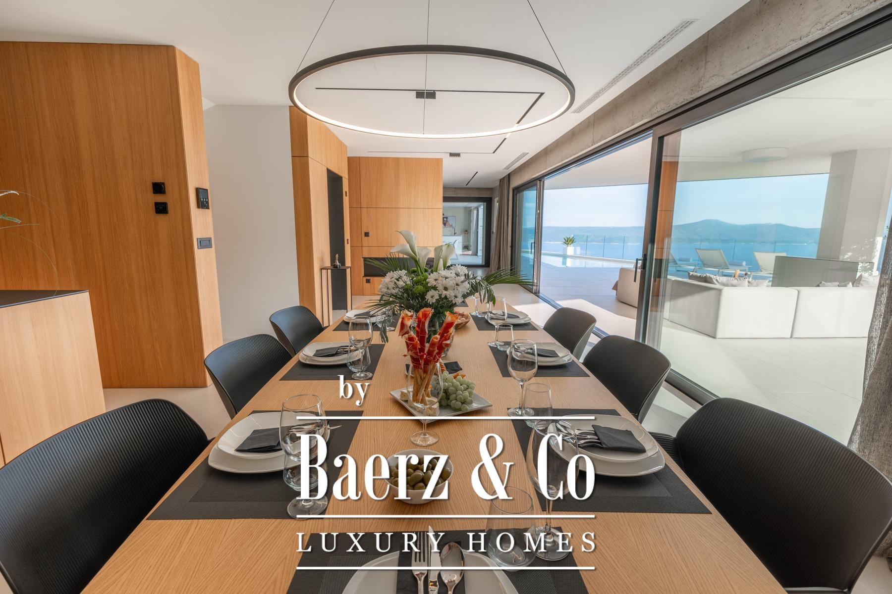 Discover a unique, newly built luxury villa in Mošćenice, above picturesque Mošćenička Draga. Completed in 2023 it offers panoramic views of the Kvarner Bay.This multi-story property, spanning 184 m2, is situated on a 917 m2 plot, perfectly blending modern design and functionality. It features four spacious rooms and four elegantly appointed bathrooms. Finished with meticulous attention to detail and premium materials, the villa includes an advanced smart home system and an elevator connecting all floors. This home is completely ready for immediate occupancy.The residence offers exceptional amenities for relaxation. Enjoy the outdoor swimming pool with sea views or the indoor swimming pool, available year-round. For ultimate wellness, a private sauna is also at your disposal.