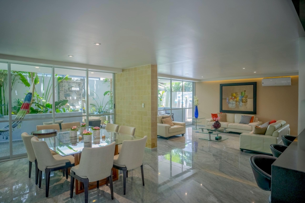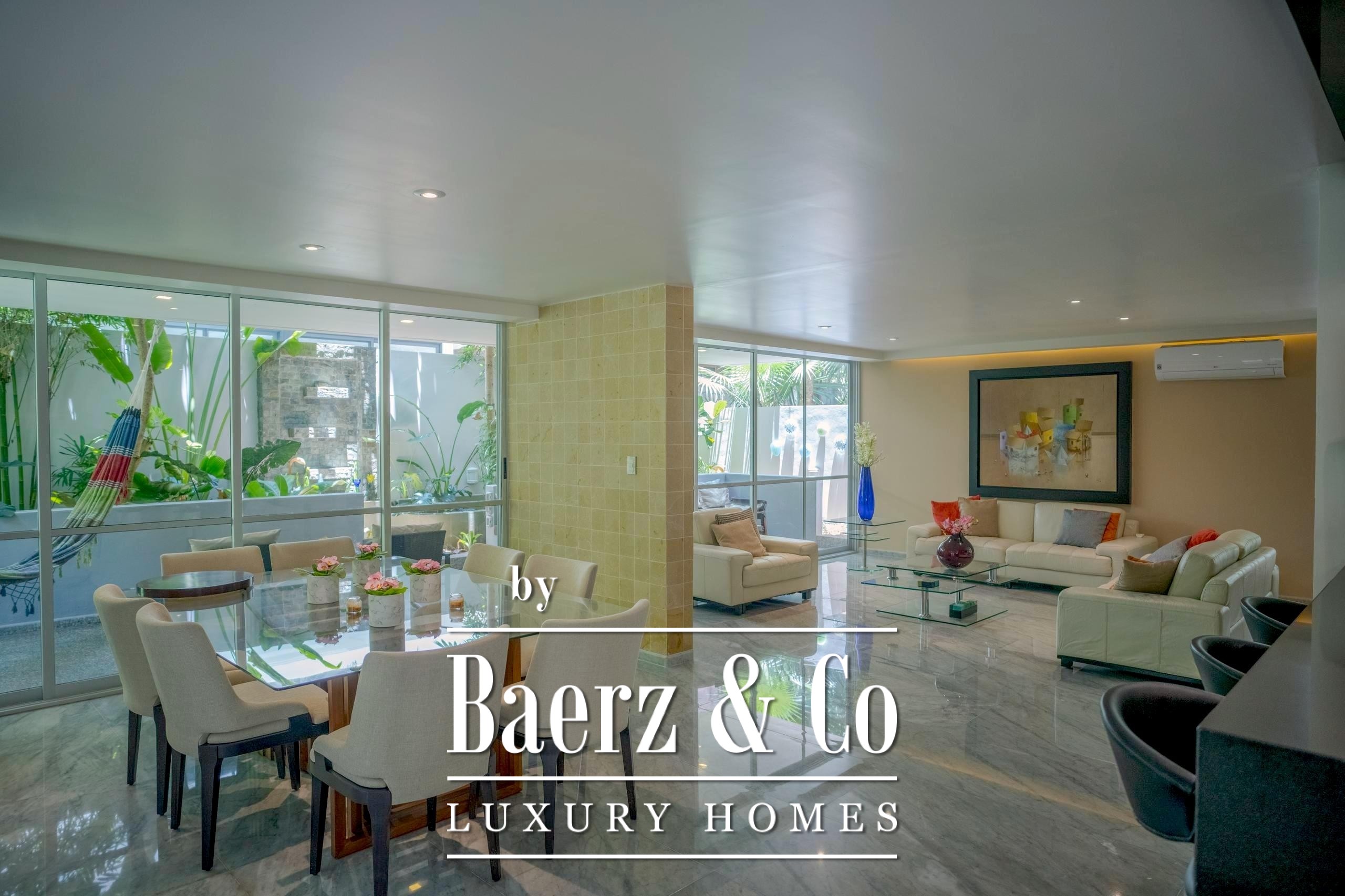 Luxury villa Playa del Carmen defines a new level of comfort in the lush enclave of Ciudad Mayakoba. Blending purposeful architecture with tropical ease, this four-bedroom, five-bathroom residence spans 401 m² on a 294 m² plot. Italian marble floors guide you across expansive interiors, from a fluid living and dining area to a terrace seamlessly merging with a private garden. Walls of glass invite daylight, emphasizing the tranquil, leafy outlook.