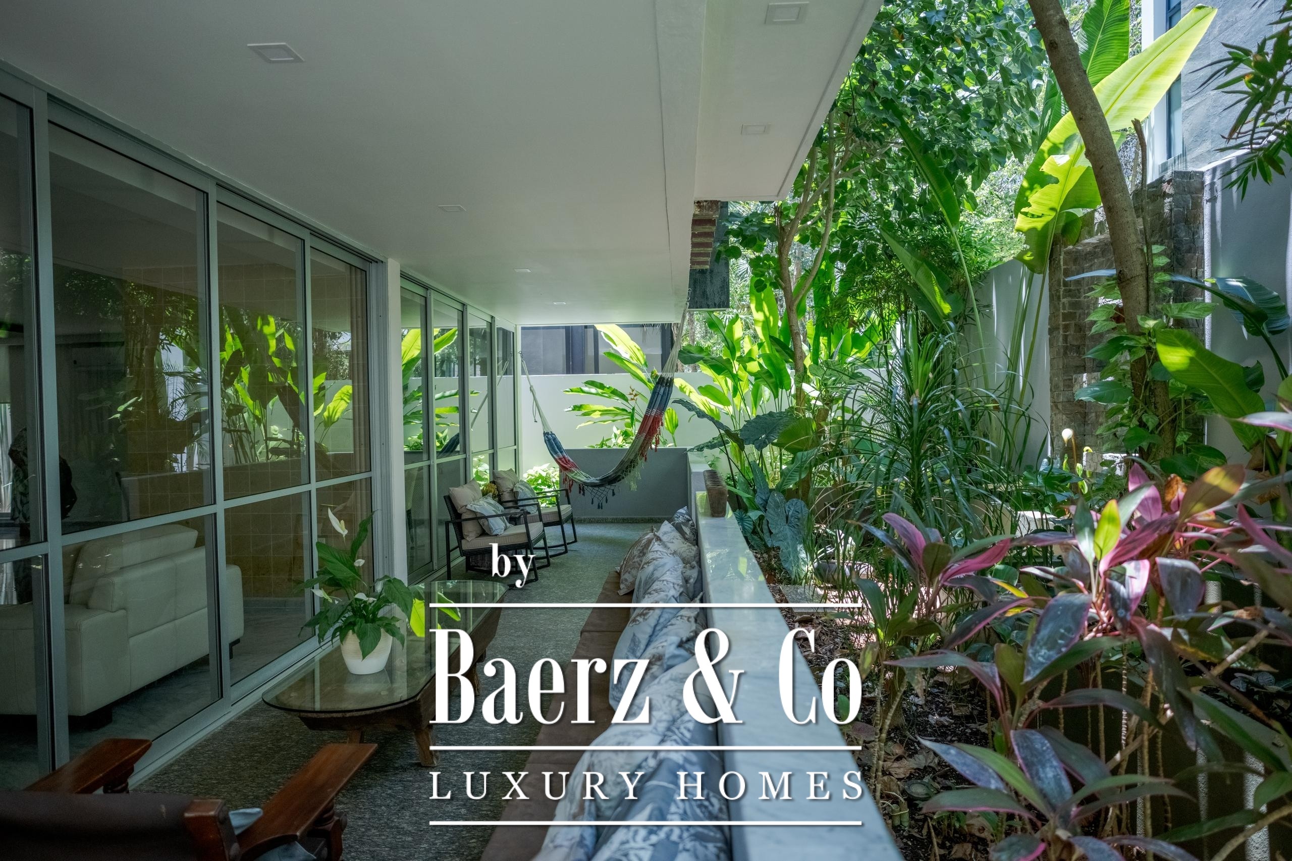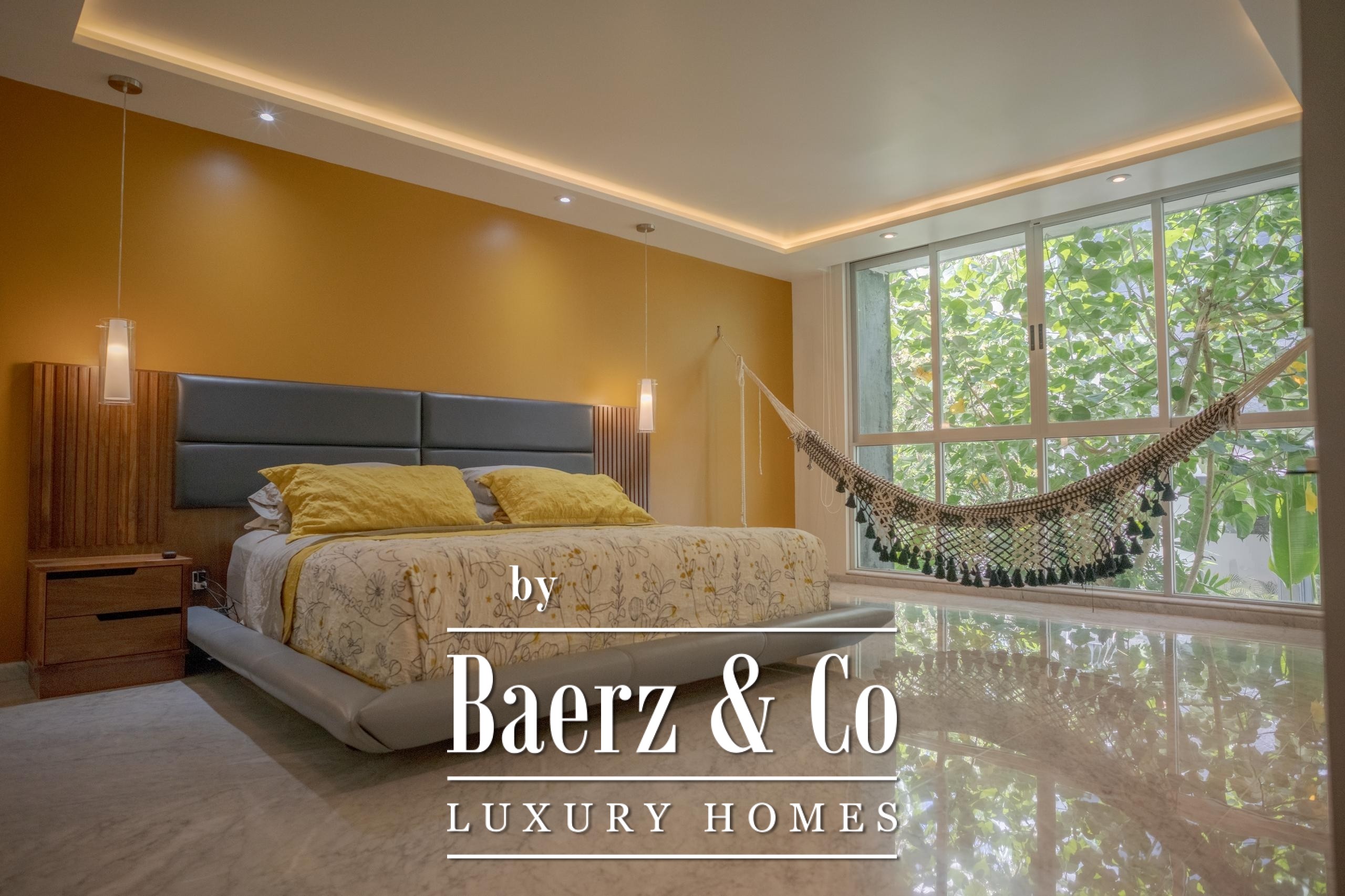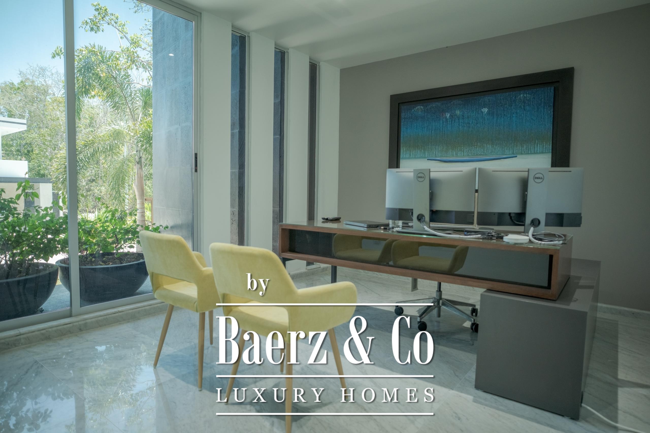 Further amenities include covered parking for two vehicles, a storage room, dual water heaters, water softener and automated irrigation system. Set within Senderos de Mayakoba, enjoy pathways through nature and a private cenote. This is a luxury villa for sale in Playa del Carmen that balances sophistication with the rhythms of tropical living.