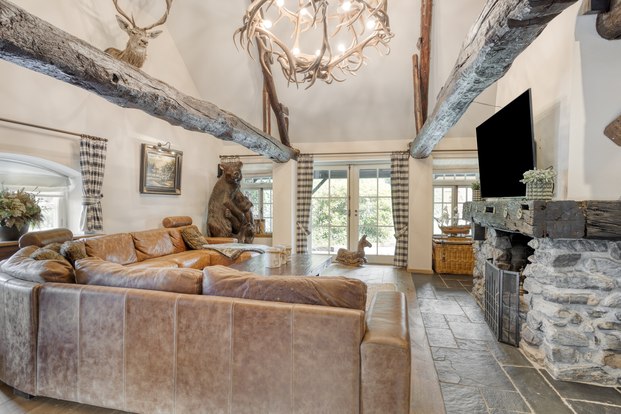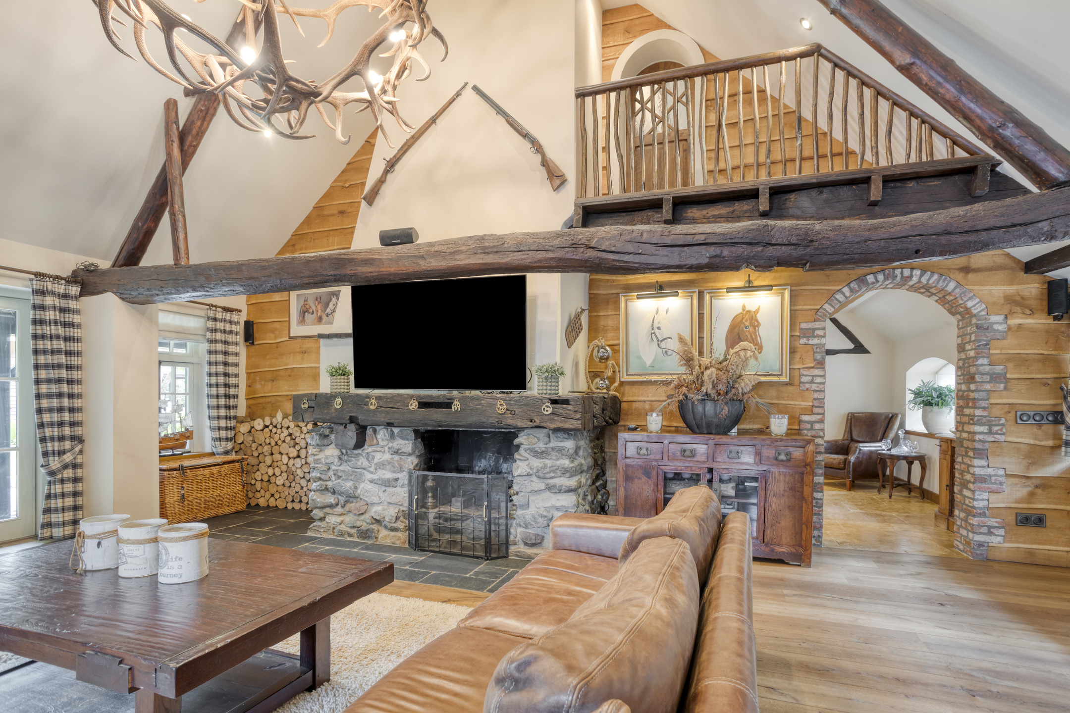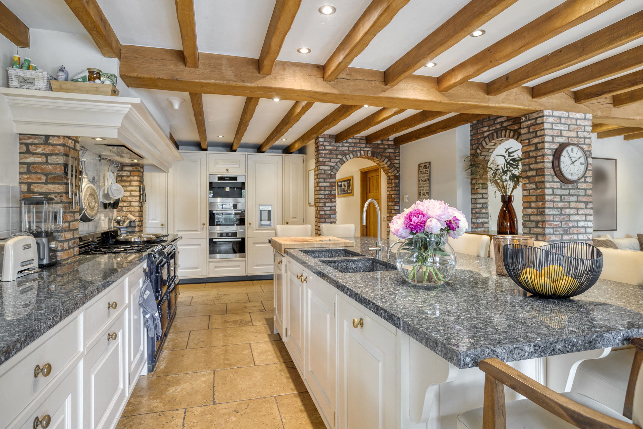 - The farmhouse and outbuilding have high ceilings with beautiful beam construction and characteristic