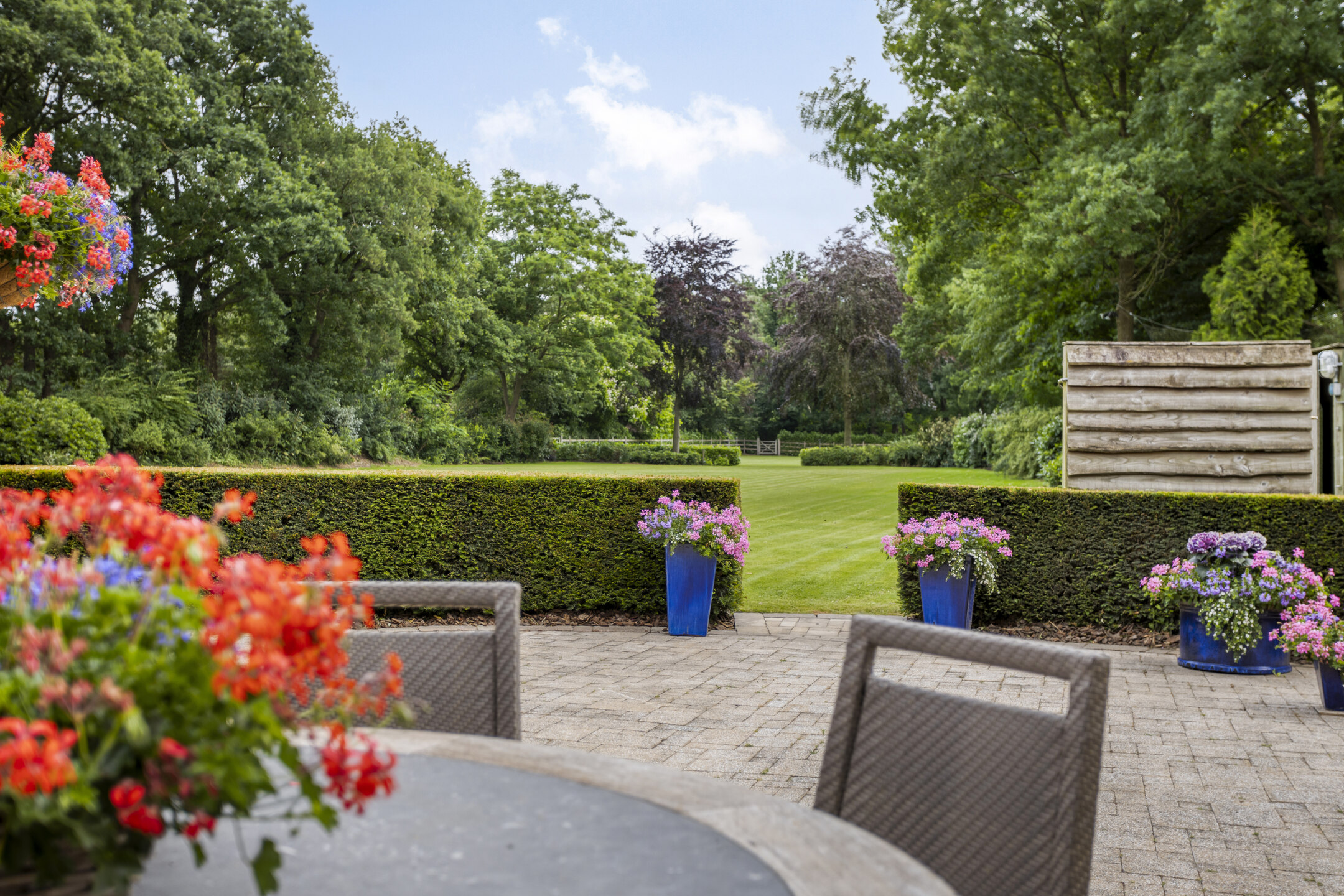 - The park-like garden faces east and offers optimal privacy.