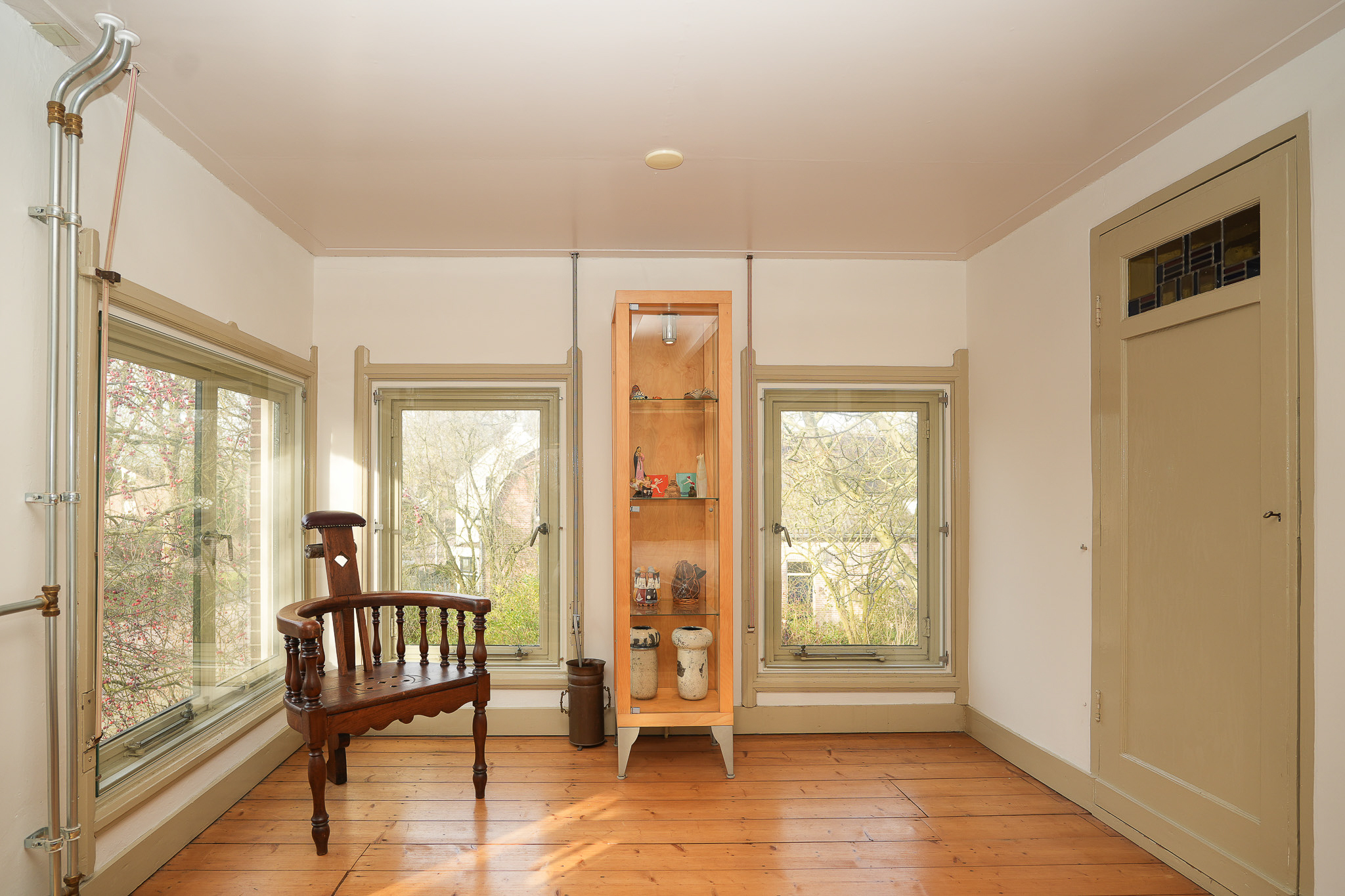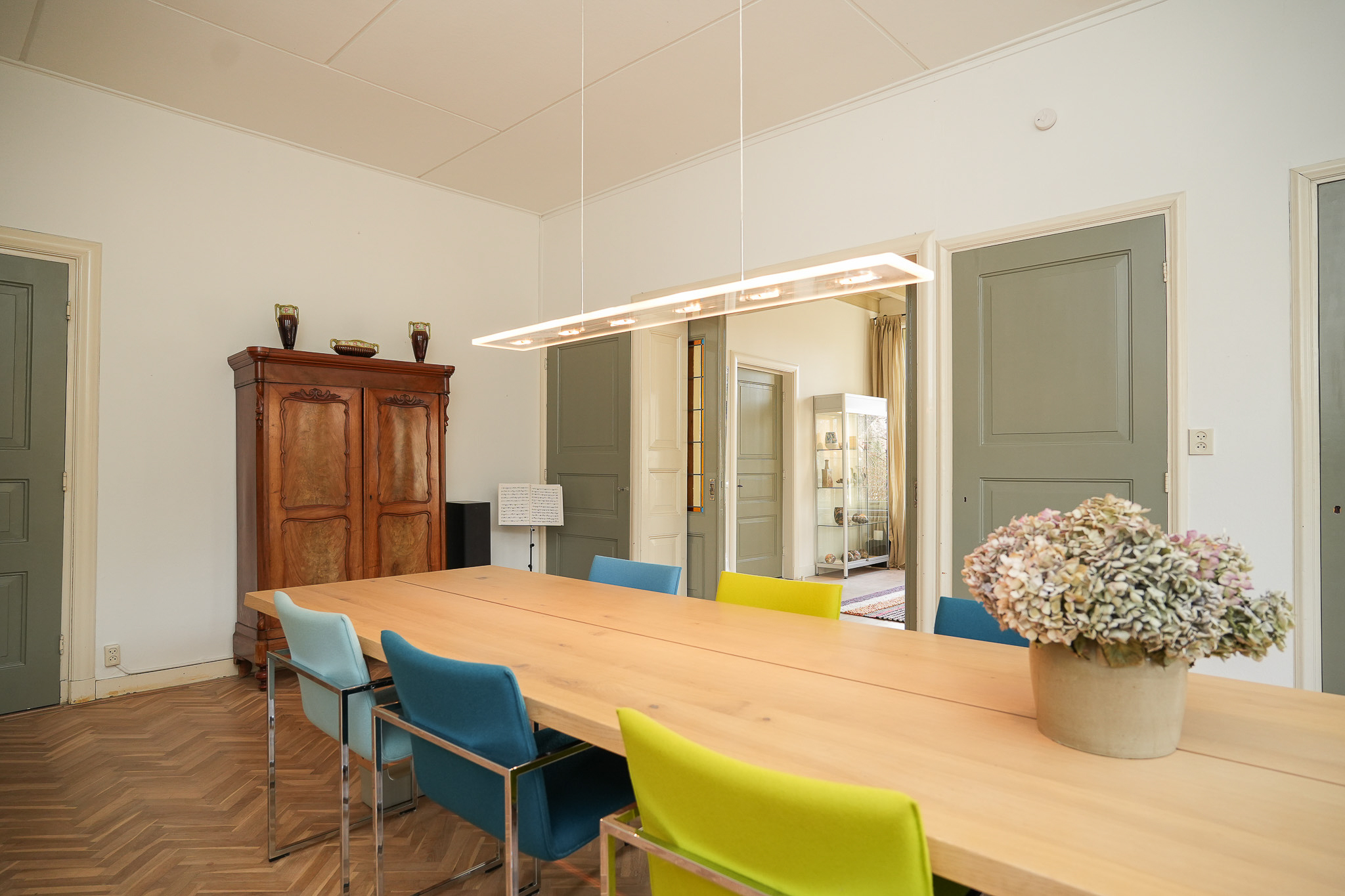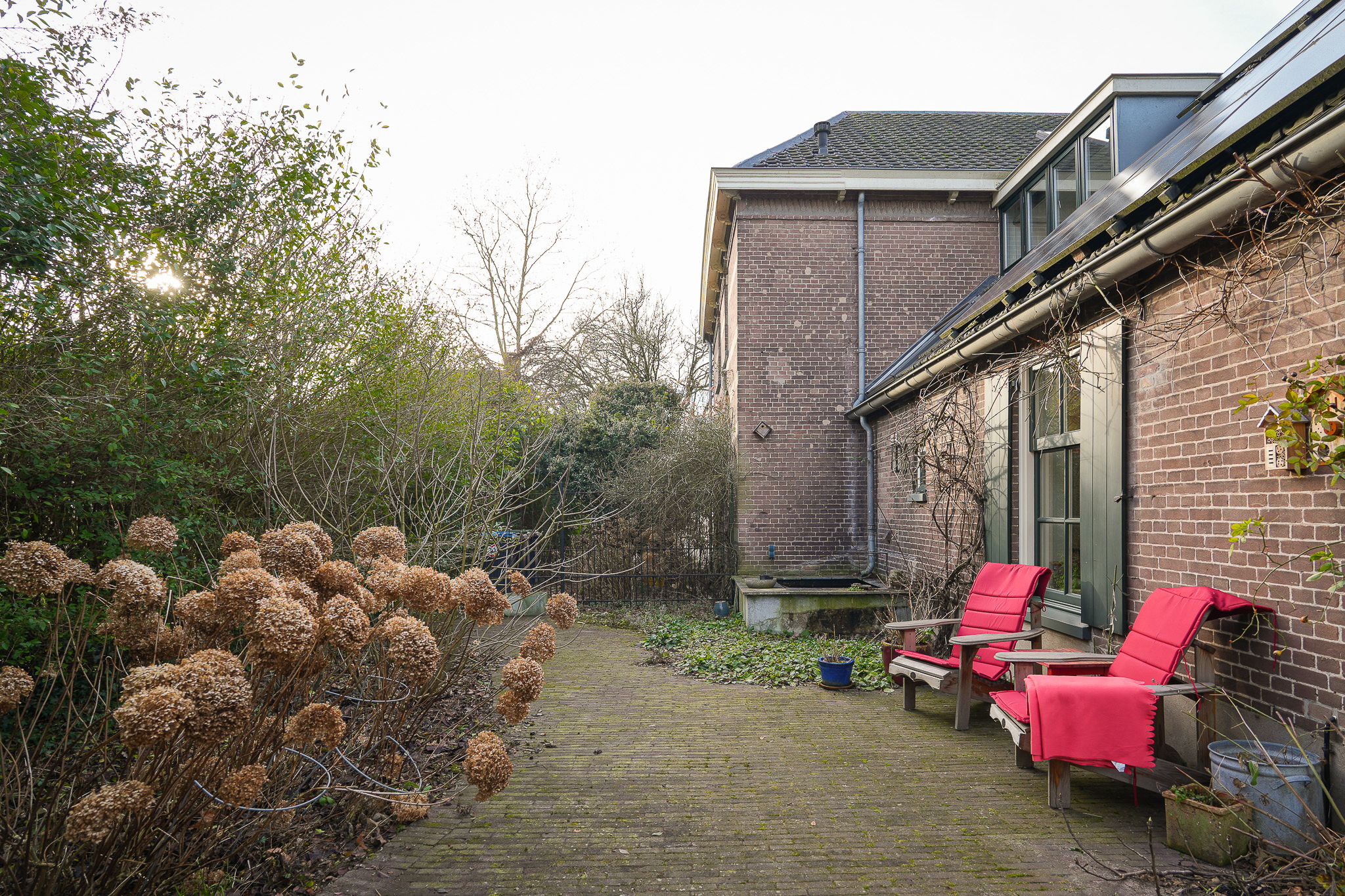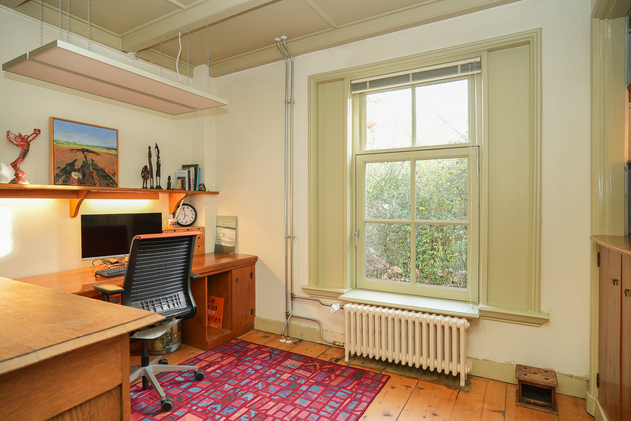 Villa Rossum combines the grace of its 1897 origins with contemporary allure, set within a 2,150 m² nature garden populated with fruit trees and edible plantings. This villa Rossum, designated a municipal monument, offers 277 m² of living area framed by original architectural details, including sliding stained glass doors, high ceilings, a broad main staircase, and crafted cabinetry. Light flows through bay windows to spaces anchored by parquet floors and a wood-burning stove, while a bespoke kitchen connects seamlessly to the garden—a design realized in 2021 to enhance indoor-outdoor living. Throughout the property, authentic features are preserved, balanced with energy-efficiency, resulting in energy class B.