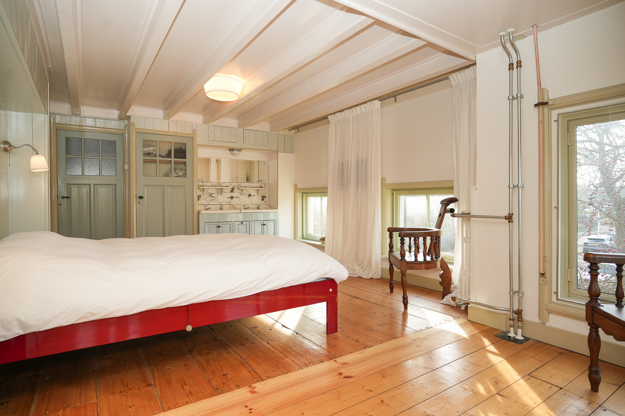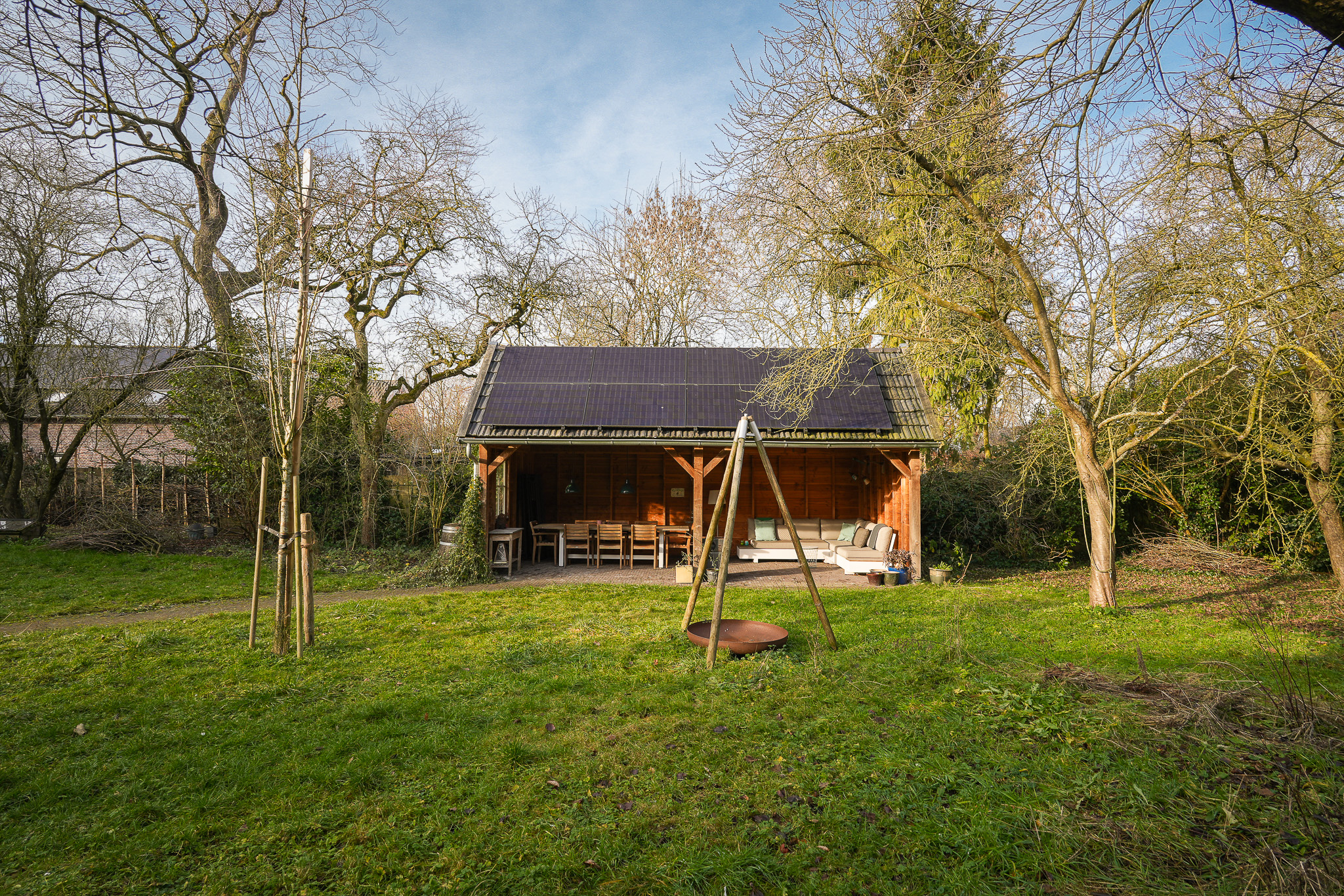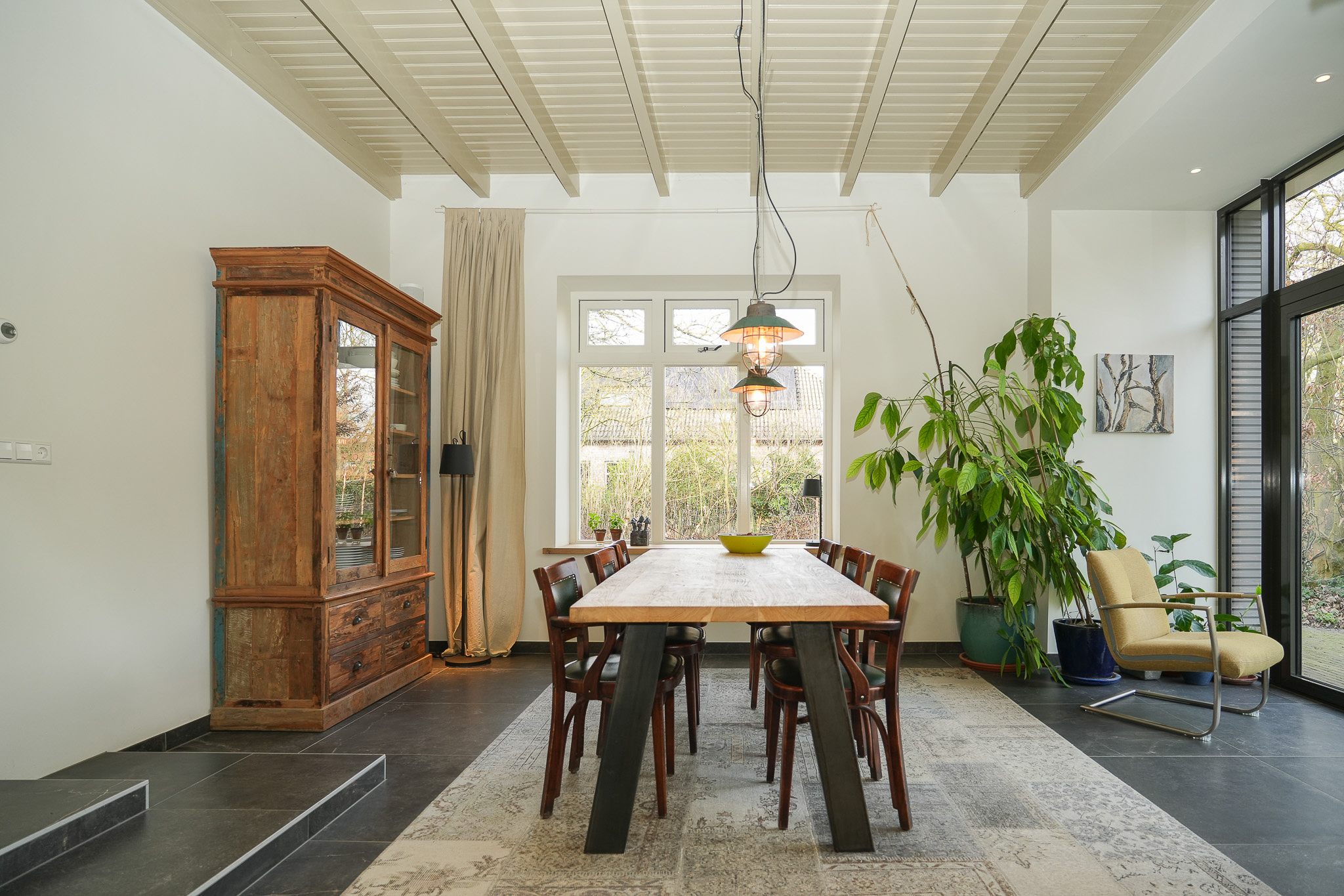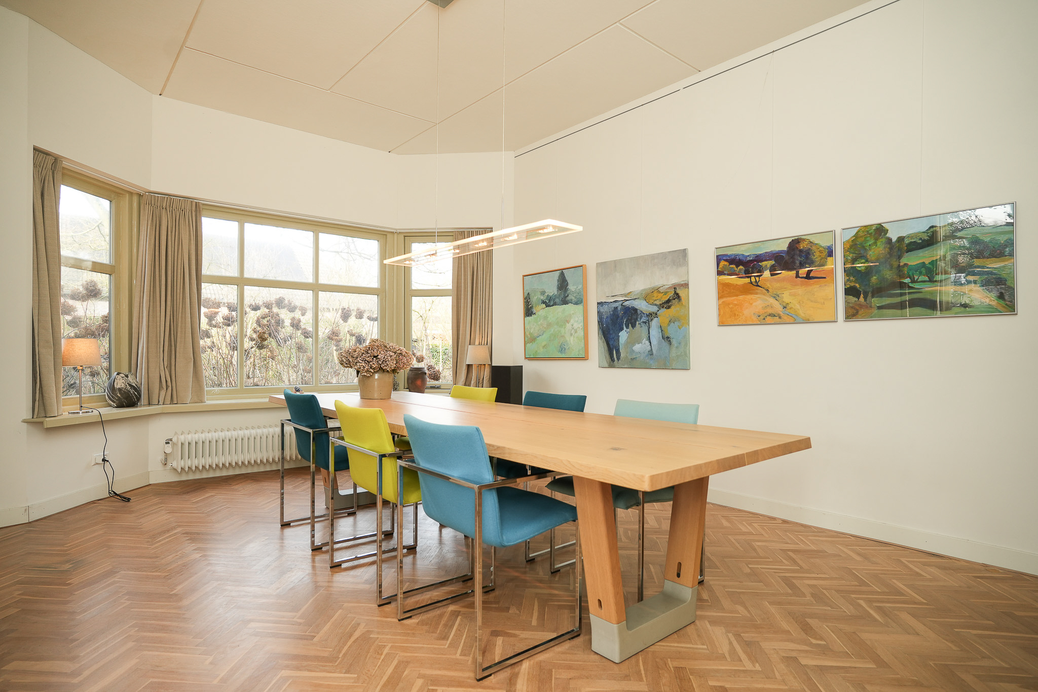 Villa Rossum combines the grace of its 1897 origins with contemporary allure, set within a 2,150 m² nature garden populated with fruit trees and edible plantings. This villa Rossum, designated a municipal monument, offers 277 m² of living area framed by original architectural details, including sliding stained glass doors, high ceilings, a broad main staircase, and crafted cabinetry. Light flows through bay windows to spaces anchored by parquet floors and a wood-burning stove, while a bespoke kitchen connects seamlessly to the garden—a design realized in 2021 to enhance indoor-outdoor living. Throughout the property, authentic features are preserved, balanced with energy-efficiency, resulting in energy class B.