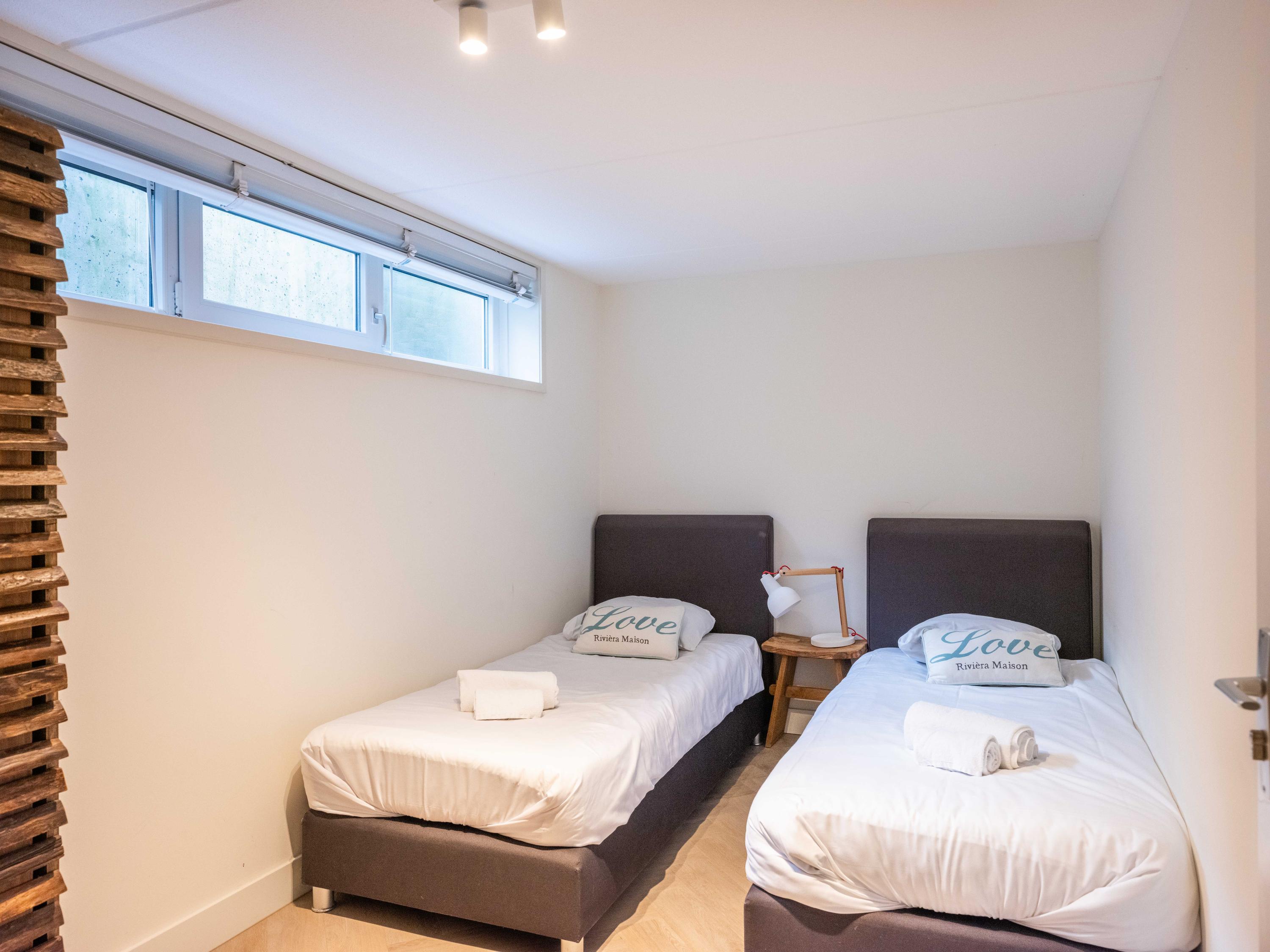 De benedenverdieping beschikt over twee slaapkamers, een heerlijke sauna en een badkamer met een ligbad, een douche en een brede wastafel.