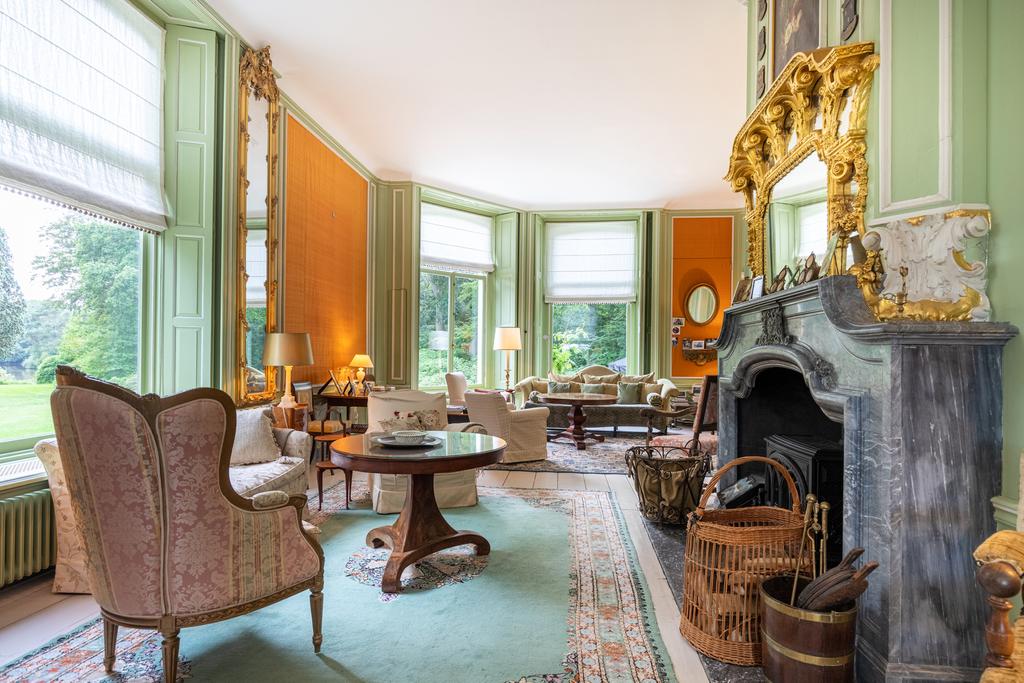 The landscaped estate extends to 5 hectares and borders the private Vegelin woodland, including a large pond. The grounds feature a terrace, a historic tea pavilion dating from circa 1900, a waterside gazebo and a carriage house with plans for conversion into additional guest accommodation or residential space with a separate driveway.