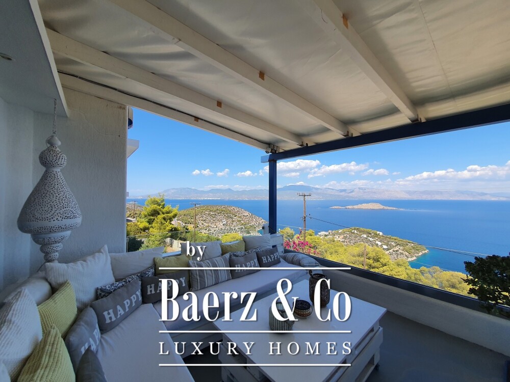 A 100 m² storage area at the rear allows scope for further independent accommodation. The property is secured with a security door and alarm system, features double-glazed insulation, and autonomous climate control across levels. Beyond its structural quality, the villa’s calm setting and breathtaking outlook affirm its rare sense of place. This luxury villa for sale in Soligeia provides discreet, timeless living within one of Greece’s most quietly desirable coastal enclaves.