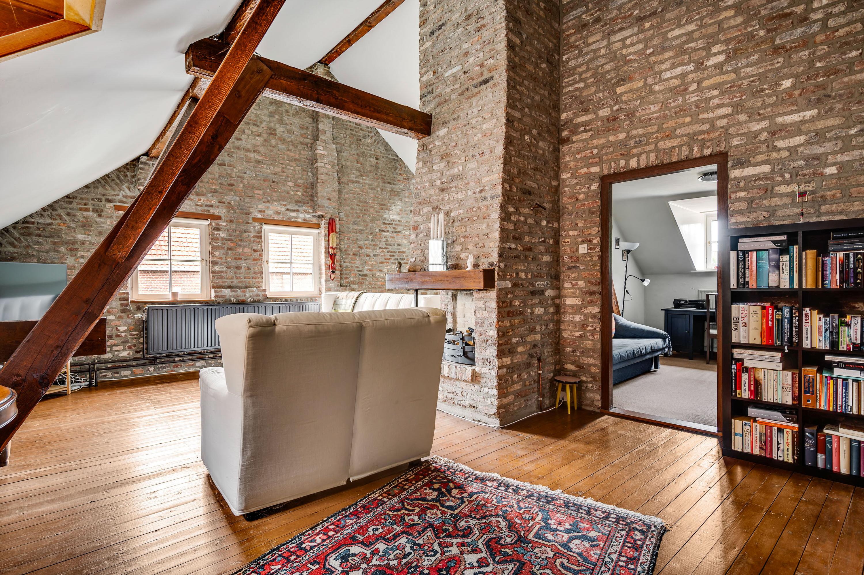 The spacious hall with a fireplace and meter cupboard provides access to the toilet, a bedroom with a separate bathroom, and the kitchen. The stairs to the first floor are also accessible from the hall. The hall also served as the B&B's former living room. This space can be used for various purposes.