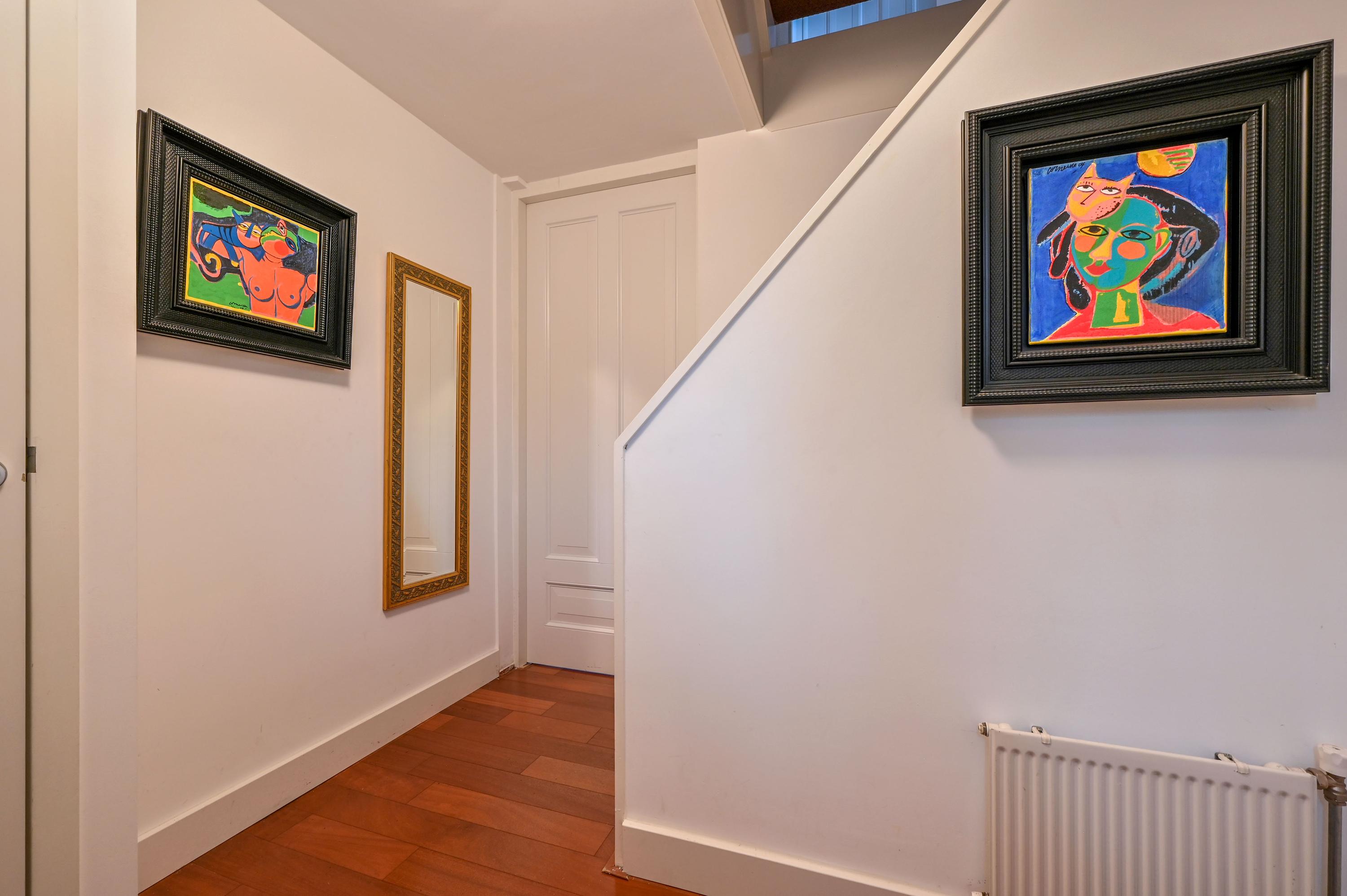 Via an open staircase, you reach the second floor, where the master suite is a true showstopper. This spacious room offers plenty of options for a luxurious and practical layout. The room features an open walk-in closet with a window overlooking the side garden, and a built-in wardrobe – both from the Italian brand Poliform – ensuring stylish and efficient storage. Two front windows and the side window provide ample natural light and are fitted with sunscreens. Laminate flooring and air conditioning complete the space. Due to its generous size, this floor also offers potential to add two attic rooms. Additionally, there is a spacious storage room with central heating and mechanical ventilation unit, ideal for extra storage and practical facilities.