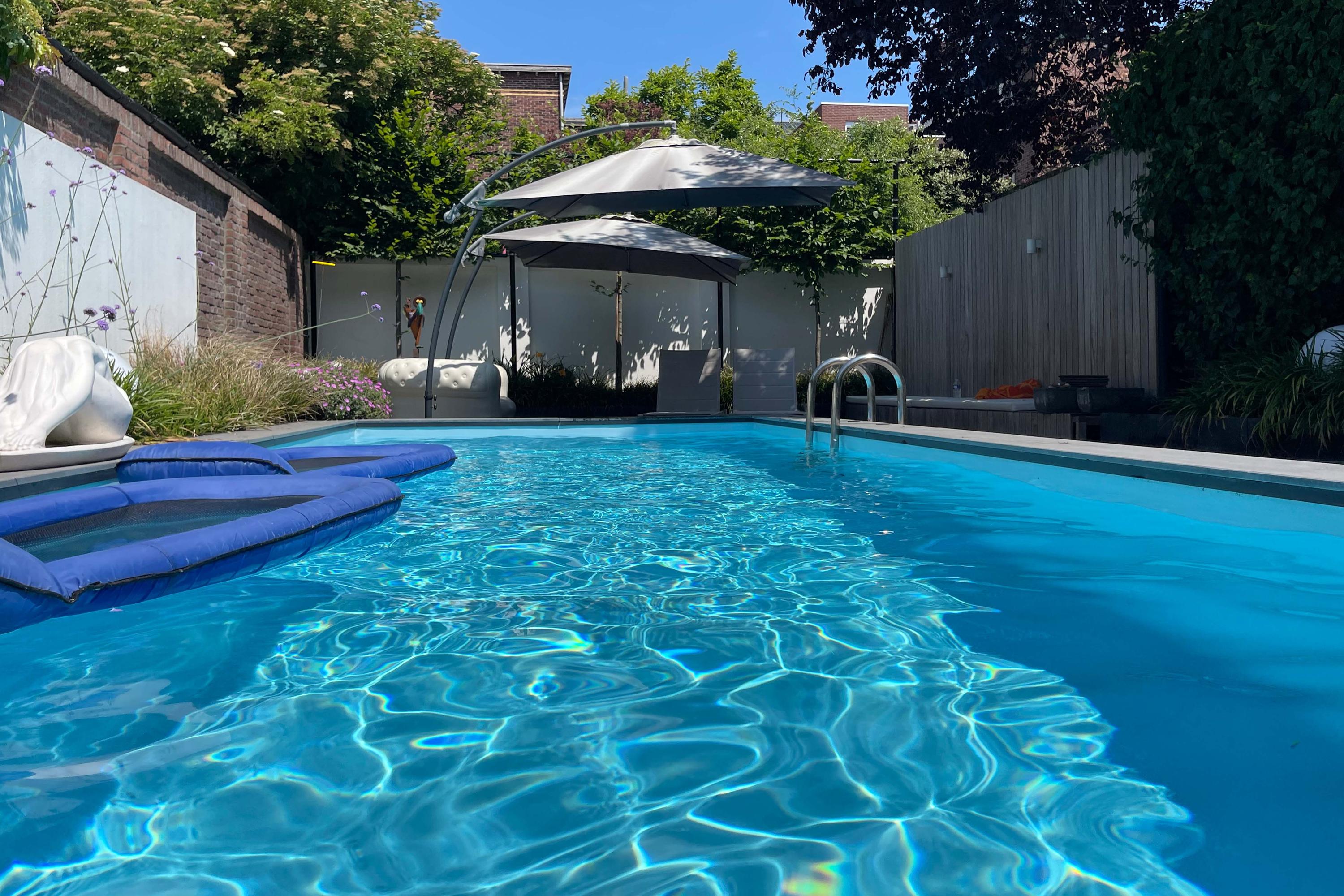 The architect-designed rear garden is wonderfully deep and, thanks to its multiple levels, offers excellent privacy. The garden includes a paved terrace, artificial grass and padauk wooden decking. It is fully walled, ensuring tranquillity despite being just steps away from Venlo’s city centre. The large garden features a heated swimming pool (with heat pump), outdoor electricity points and garden lighting.